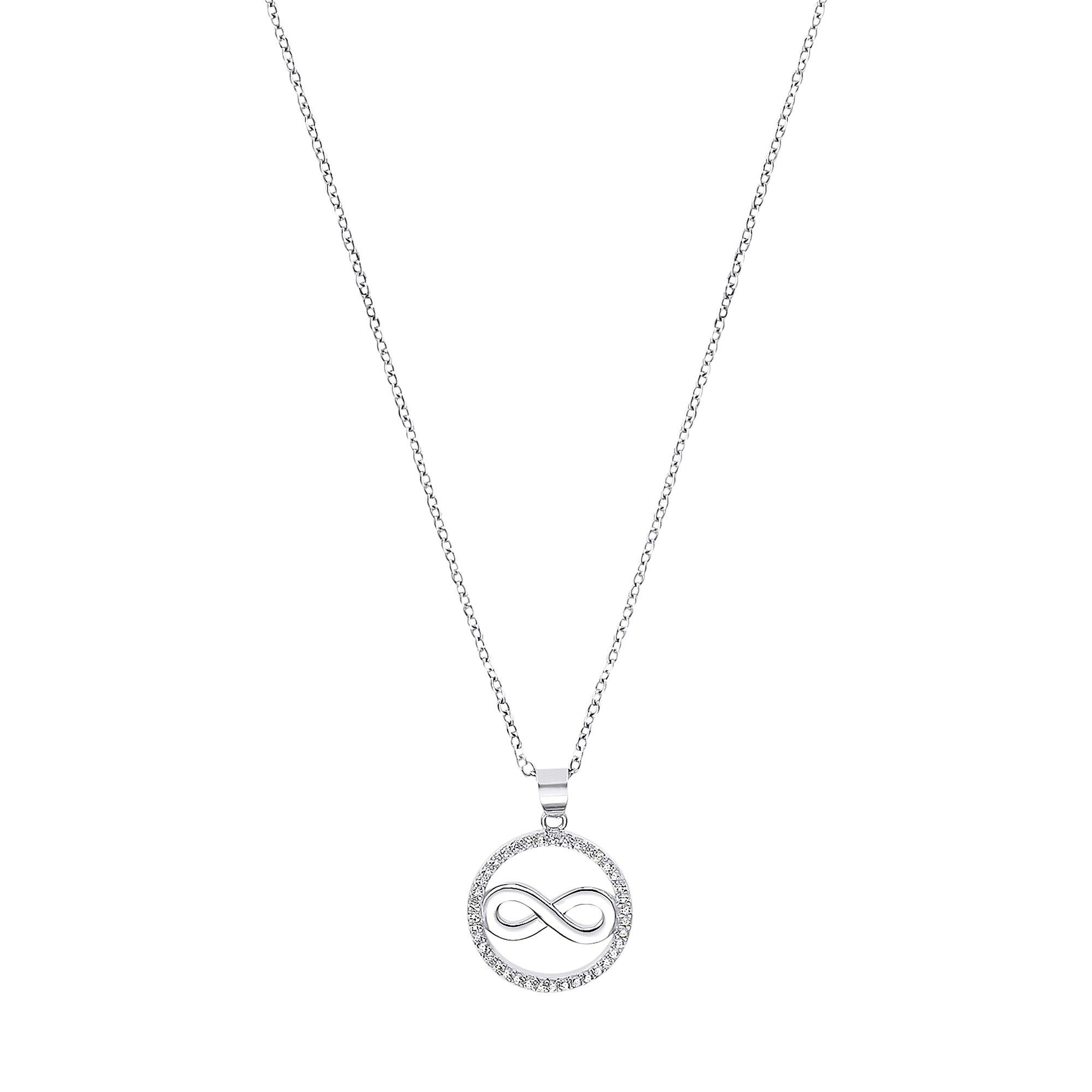 "To infinity and beyond!" – ein Hoch auf die Ewigkeit! Setze funkelnde Highlights mit diesem wunderschönen Halsschmuck. Der Anhänger, besetzt mit funkelnden weißen Zirkonia besticht durch sein Infinity Design. Hergestellt aus hochwertigem 925 Sterling Silber ist dieses Necklace ein Eyecatcher. Die Rhodiumbeschichtung schützt das Schmuckstück vor dem Anlaufen.