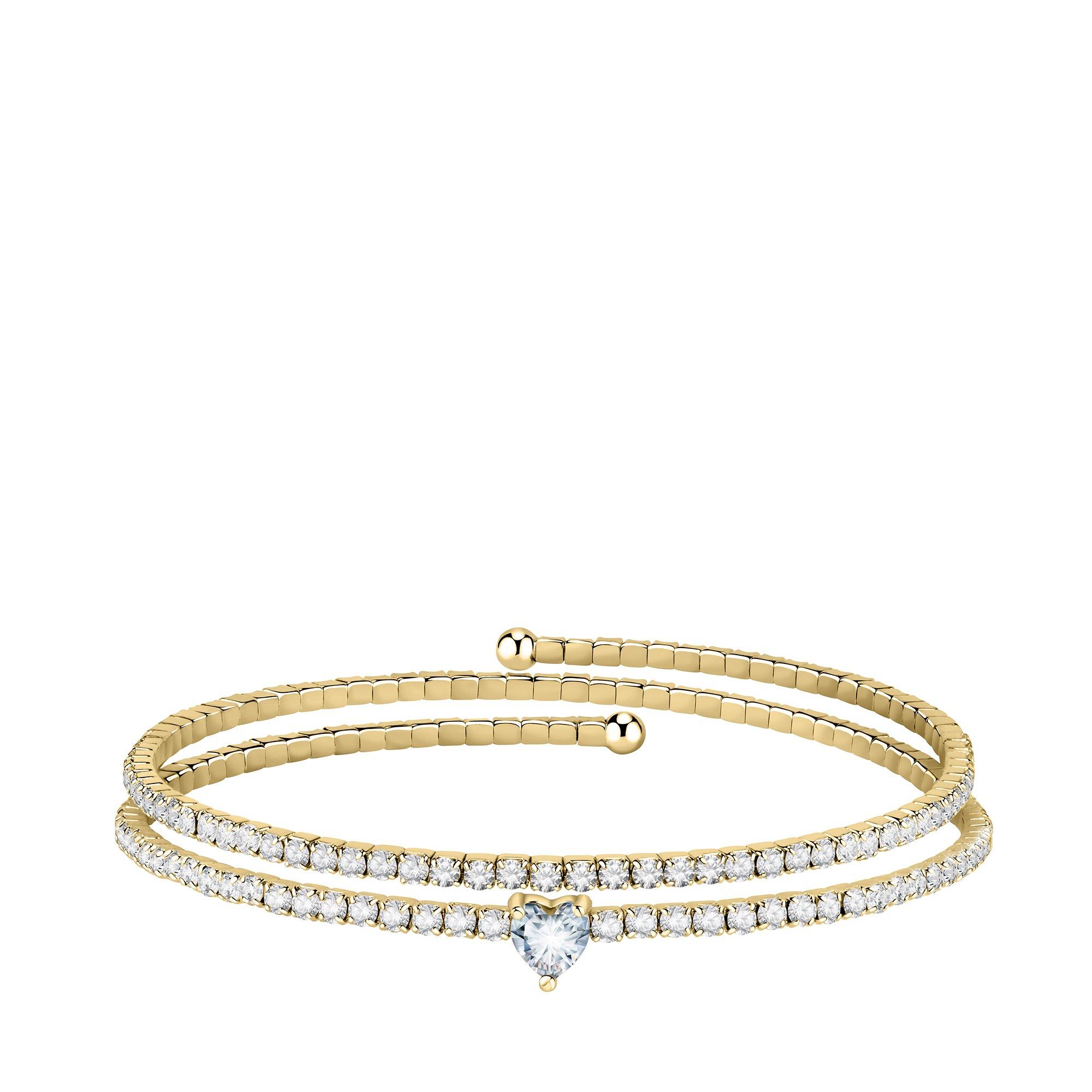 Dieses doppelreihige Armband der Marke La Petite Story besteht aus Edelstahl und präsentiert sich mit funkelnden Kristallen in einer Krappenfassung. Das Herzstück bildet ein bezauberndes Herz. – Ideal als Geschenk für einen geliebten Menschen.