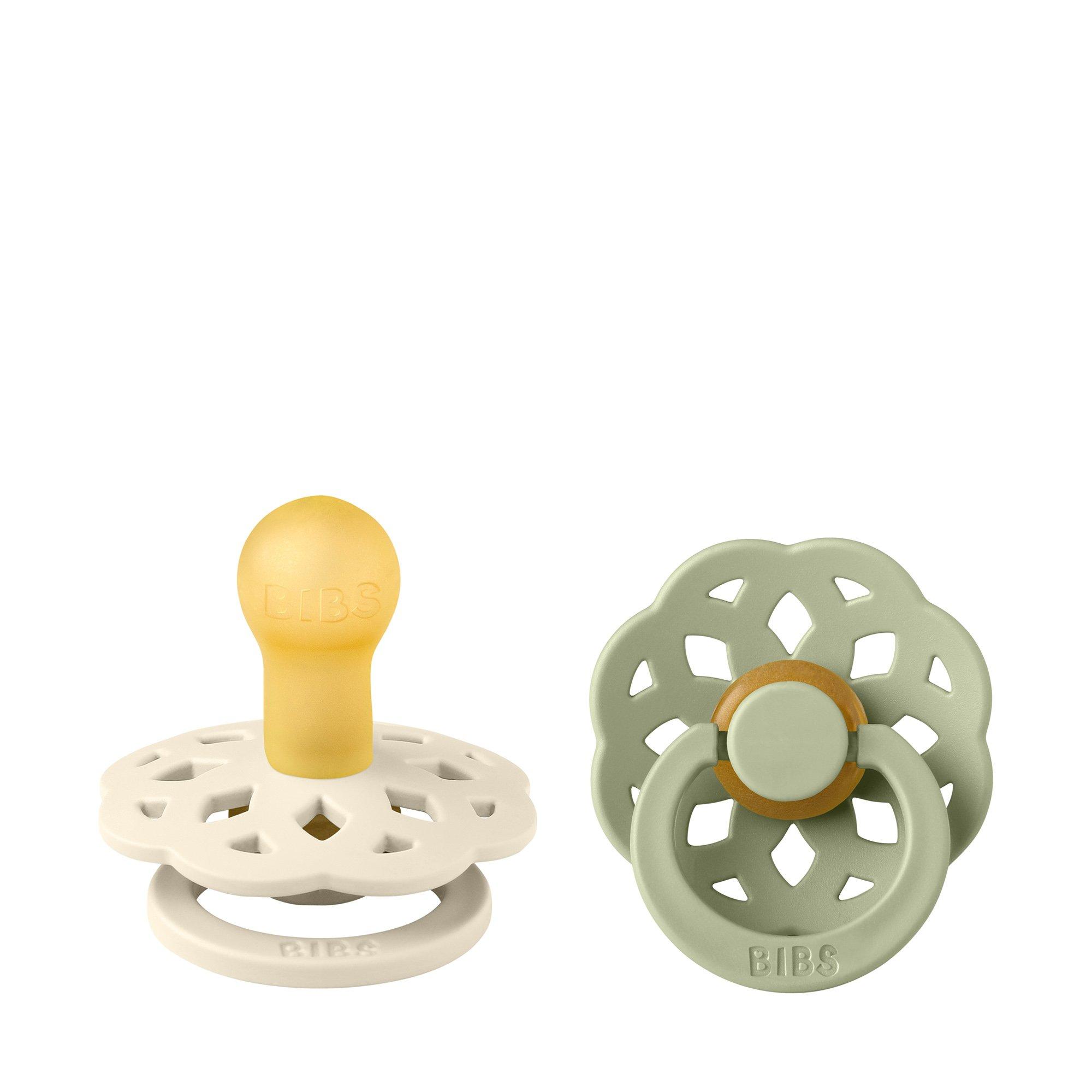 Die Schnuller von Bibs haben einen symmetrischen, flachen Schnullerkopf aus Naturkautschuklatex, welcher eine ähnliche Zungenplatzierung und Saugtechnik wie beim Stillen fördert. Das Schild des Schnullers hat eine optimierte, runde Form mit praktischen Luftlöchern, damit Belästigungen durch die feuchte Umgebung und Unterdruck auf der Babyhaut vermieden werden. Der Schnuller wird daher von Hebammen zur Unterstützung des natürlichen Stillens empfohlen.