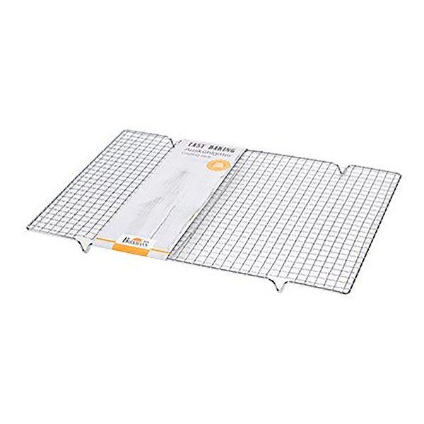 Mit dem richtigen Zubehör klappt das Backen wie geschmiert! Das eckige Auskühlgitter aus der Themenwelt Easy Baking von RBV Birkmann ist durch die engen Gittermaschen für die Abkühlung sowohl großer als auch kleiner Gebäckstücke bestens geeignet. Ob Kuchen, CakePops oder Plätzchen - nach dem Backen sollten alle Backwaren stets auf einem Auskühlgitter ruhen und vollständig auskühlen, bevor es mit der Dekoration weitergeht. Außerdem erhalten die Köstlichkeiten nur so eine leckere, knusprige Kruste. Das verchromte Kuchengitter ist 32 cm x 45 cm groß und verfügt über praktische kleine Füße, sodass ein optimaler Luftaustausch von allen Seiten bestens gewährleistet ist. Die Gebäcke kühlen so schön gleichmäßig ab und auch Brote oder größere Kuchen finden auf diesem Gitter ausreichend Platz.