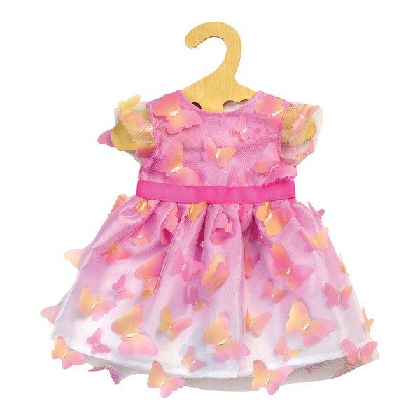 Schmetterling Du kleines Ding, such Dir eine Tänzerin. Im Puppenkleid „Miss Butterfly“ von Heless fühlt sich jede Puppe anmutig und elegant wie ein kleiner Schmetterling. Das Unterkleid im Ombré-Look mit pastelligem rosa Farbverlauf wird von einem edlen Tüll bedeckt, auf dem zart aufgesetzte Schmetterlinge durch die Lüfte tanzen. Das Gürtelband in Pink und die Rüschen an den Schultern machen den verspielten Look perfekt. Der Klettverschluss im Rücken sorgt dafür, dass das Puppenkleid kinderleicht an- und ausgezogen werden kann. Ein Outfit mit viel Liebe zum Detail, das schon beim ersten Anblick Frühlingsgefühle verleiht.