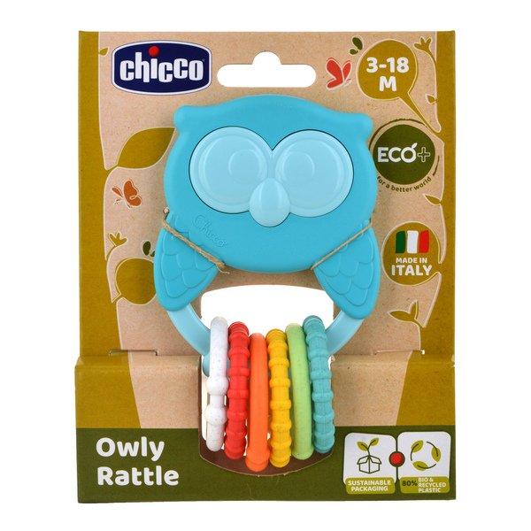 Rassel in Form einer Eule mit 6 bunten rasselnden