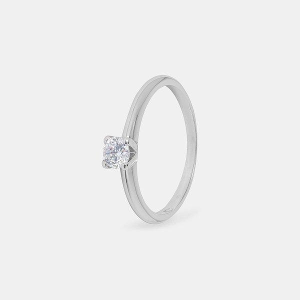 Dieser elegante Solitär-Ring von L'Atelier Gold by Manor besticht durch den strahlenden Zirkoniastein, der funkelnd in einer Krappenfassung gehalten wird. Das sanfte Weissgold macht diesen Ring zu jedem Outfit und mit anderen Ringen tragbar.