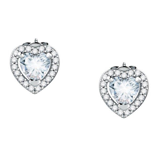 Diese silbernen Ohrhänger von der Marke Morellato sind aus Silber gefertigt und werden durch einen strahlenden in eine Herzform eingearbeiteten Kristall veredelt. Dieser wird duch kleinere Kristalle umrundet.