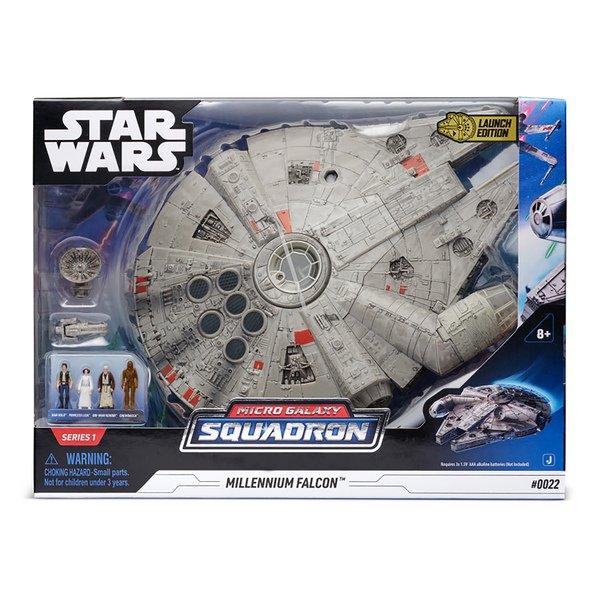 Star Wars Fahrzeug und Figuren so Massstabsgetreu wie noch nie zuvor. Jedes Fahrzeug in relativen Massstab zueinander! Hol dir den superlativen 22.5cm grossen Millenium Falcon und seine 4 köpfige bewegliche Crew bestehd aus: Obi-Wan Kenobi, Princess Leia, Han Solo & Chewbacca Falcon Specials: beleuchtende Triebwerke, Soundfunktion über Bewegungssensoren, einziehbares Fahrwerk, drehende Radarschüssel, bewegliche Kanonen, Abdeckungen und Cockpit zum Öffnen damit die 4 Figuren darin Platz nehmen können.