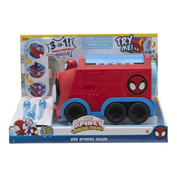 Rette die Stadt mit den Spider Freunden und ihrem erstaunlichen Spinnennetz Laster. Schliesse dich Spidey Ghost-Spider und Miles Morales an: Spider-Man bei der Jagd auf Bösewichte in diesem 20 cm grossen 3-in-1 transformierenden Laster. Spidey übernimmt das Steuer während Ghost und Miles zwei Web Pfeile-Werfer bedienen. Drehe das Rad auf der Rückseite am Heck des Lasters auf das richtige Symbol und entweder Ghost oder Miles tauchen mit ihrem eigenen Web Pfeil auf. Drücke den Knopf an jedem Werfer um einen Web Pfeil auf einen beliebigen Bösewicht zu feuern. Drehe das Rad zurück auf das Spidey Symbol und das Dach des Lasters schliesst sich während Spidey die Verfolgung aufnimmt. Sammle dieses transformierende 3-in-1 Fahrzeug und weitere Marvel's Spidey und seine Super-Freunde Spielzeuge.