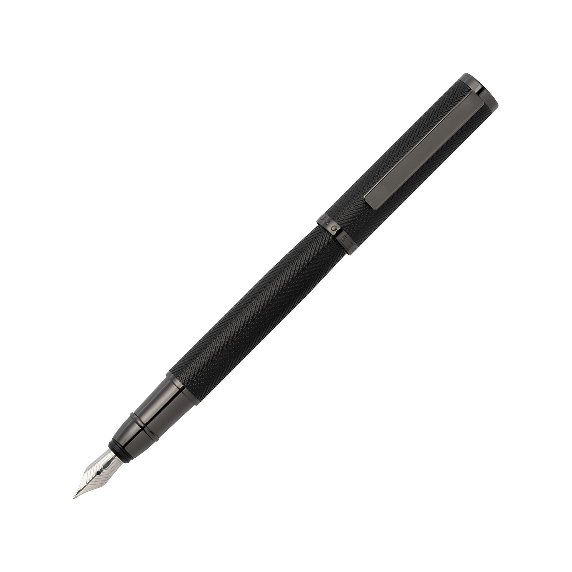 Fein verarbeitet mit einem raffinierten Fischgrätenmuster, das an die Anzüge des Modehauses erinnert, ist der Füllfederhalter Herringbone zeitlos und elegant. Diese Neuinterpretation der ikonischen Konturen der "Formation" Serie ist mit knackigen dunklen Chromakzenten verziert.