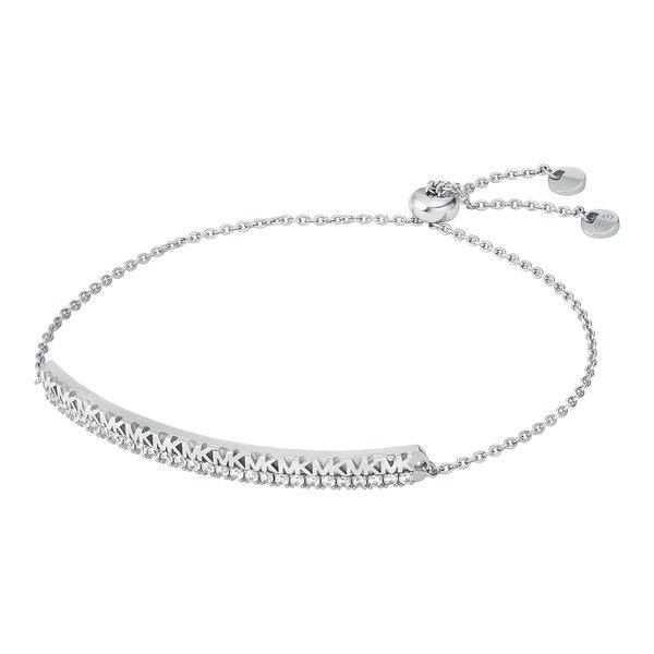 Dieses filigrane Armband der Marke Michael Kors aus Edelstahl präsentiert sich mit funkelnden Steinen und dem Marken-Logo. Der Schiebeverschluss ermöglicht ein Einfaches An- und Ausziehen.
