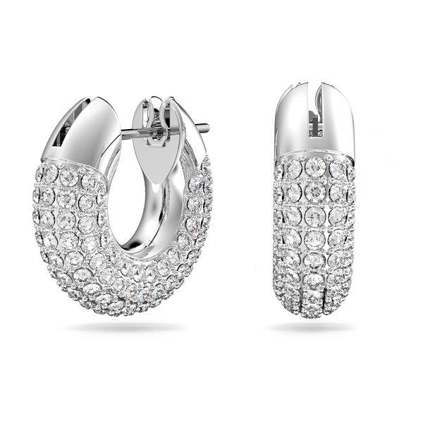 Diese moderne Interpretation klassischer Kreolen im Unisex-Design verleihen jedem Outfit einen dynamischen Akzent. Das skulpturartige Design ist eine Hommage an die legendäre Pavé-Technik von Swarovski, mit glitzernden Kristallen im Foiled-Schliff, die auf einen rhodinierten Rahmen gesetzt werden. Tragen Sie sie nicht nur tagsüber, sondern auch nach Einbruch der Dunkelheit als spannendes Statement-Duo.