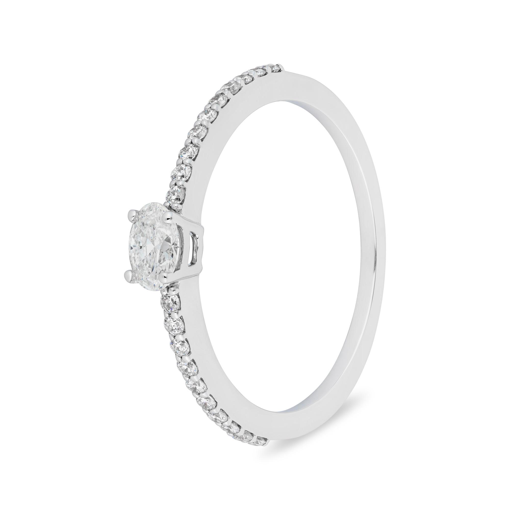 Die grazile Feinheit dieses Weissgoldrings von Zen Diamond wird auf keine Weise vom zentralen Brillanten beeinträchtigt. Eher verblüfft die lichtdurchlässige Fassung durch das faszinierende Farbspiel der Diamanten.