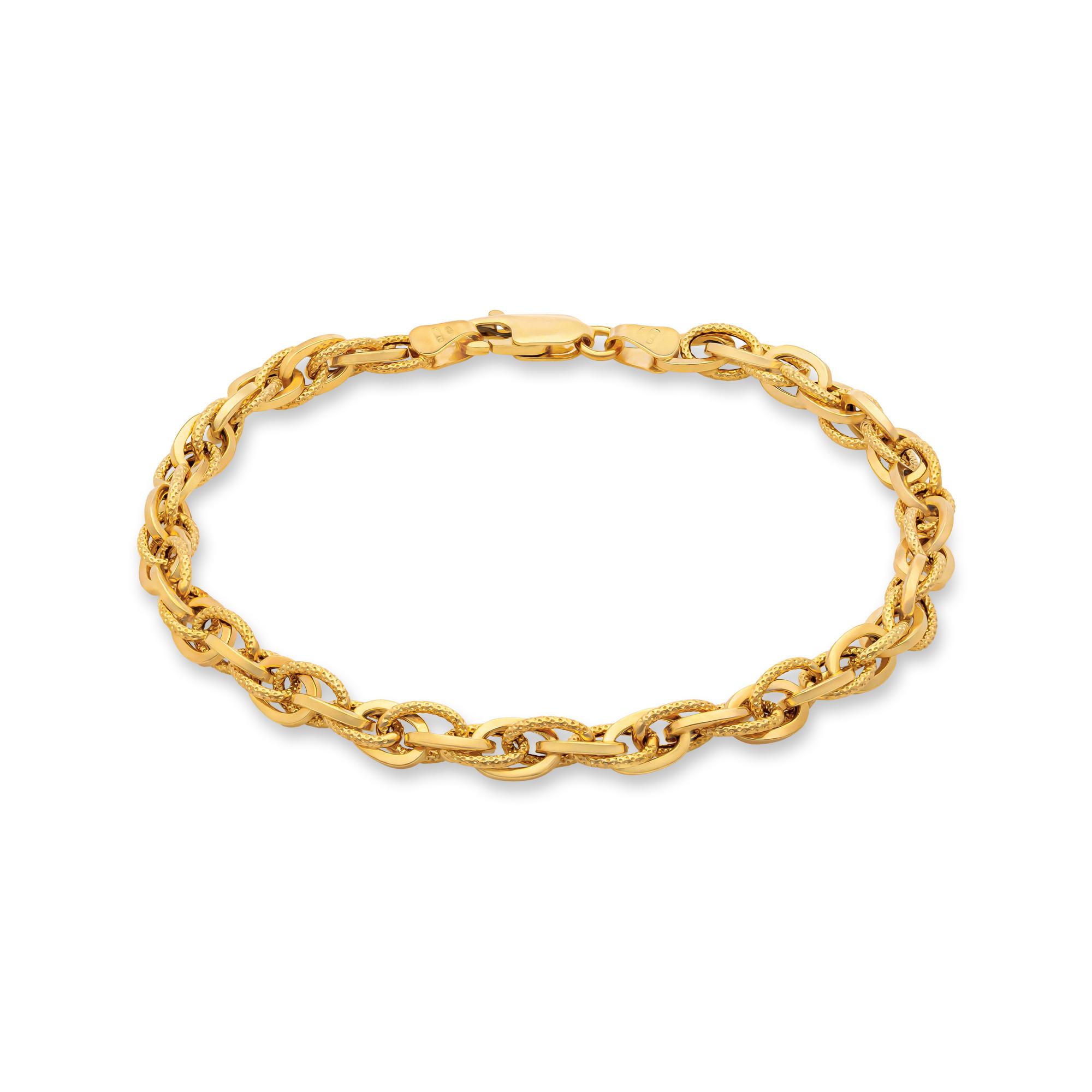 Dieses Armband von L'Atelier Gold 18 Karat by Manor ist ein auffallendes Schmuckstück, das aus Kettengliedern mit verschiedenen Texturen hergestellt ist, die kunstvoll ineinander verwoben sind. Das Kettchen ist aus reinem Gelbgold gefertigt mit einem eleganten Karabinerverschluss.