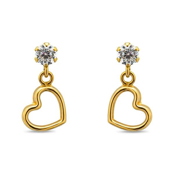 Diese herzigen Ohrhänger von Caramel mit Zirkonia-Besatz sind aus 18-karätigem Gold hergestellt. In der stabilen Label-Schmuckbox wohnt ein kleiner Bär, der die Kostbarkeiten gut bewacht.