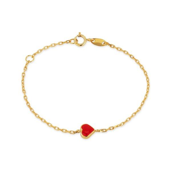 Dieses klassische Armband von Caramel ist aus 18-karätigem Gold hergestellt und mit einem emaillierten Herz versehen. In der stabilen Geschenk-Box lässt sich das Schmuckstück auch aufbewahren. Dann passt das Bärenkind darauf auf.