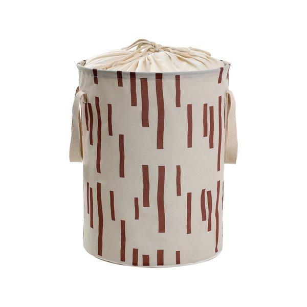 Dekorativer Wäschekorb von Manor mit Tragegriffen und Musterung. Der Wäschekorb ist stabil, kann aber auch zusammengefaltet werden, wenn er nicht gebraucht wird. Er ist an der Oberseite mit Kordelzügen ausgestattet, so dass er einfach und schnell geöffnet und geschlossen werden kann. Maximale Tragkraft sind 5 kg.