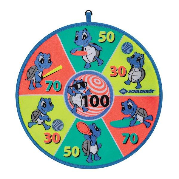 Das neue Schildkröt Soft Dart Set besteht aus einer Klett-Dart-Scheibe (38cm), die beidseitig mit unterschiedlichen Zielfeldern bedruckt ist und von beiden Seiten bespielt werden kann. Mit den Klettbällen (4cm) wirft jeder Spieler abwechselnd 3 farbige Bälle auf das Ziel, um die höchsten Zahlen zu treffen. Nachdem die Zahlen addiert wurden, gewinnt der Spieler, der die meisten Punkte erzielt. Die Klettbälle besitzen eine spezielle Kurzklette, die auch bei festem Aufprall auf der Scheibe kleben bleibt und nicht abspringt. Soft Dart Set für 2 Spieler. Der ungefährliche Dart-Spass für die ganze Familie. Sie müssen sich keine Sorgen über scharfe Pfeile machen, die Verletzungen verursachen oder Löcher in die Wand machen.