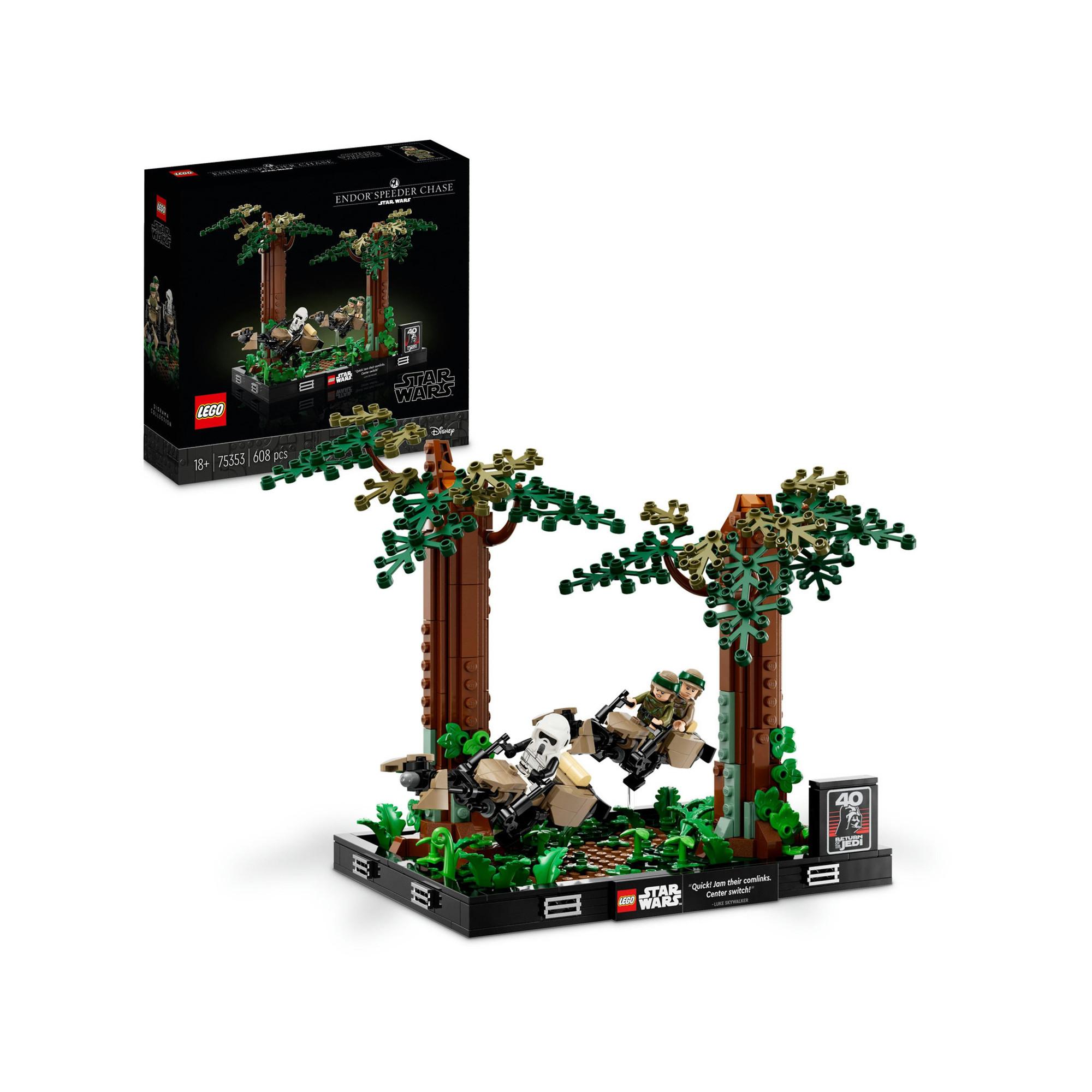 - Verfolgungsjagd auf Endor™ – Diorama (75353): Bilde eine ebenso detailgetreue wie dynamische Szene aus LEGO® Steinen nach, die die legendäre Speeder-Verfolgungsjagd auf dem Waldmond von Endor aus Star Wars: Die Rückkehr der Jedi-Ritter darstellt