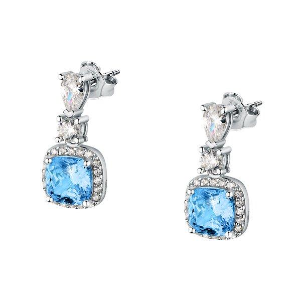 Die Morellato Tesori Ohrringe für Frauen bestehen aus 925er Silber und sind mit azurblauen Zirkonsteinen verziert. Sie wiegen 3 Gramm und sind ein wertvolles Accessoire von Morellato.