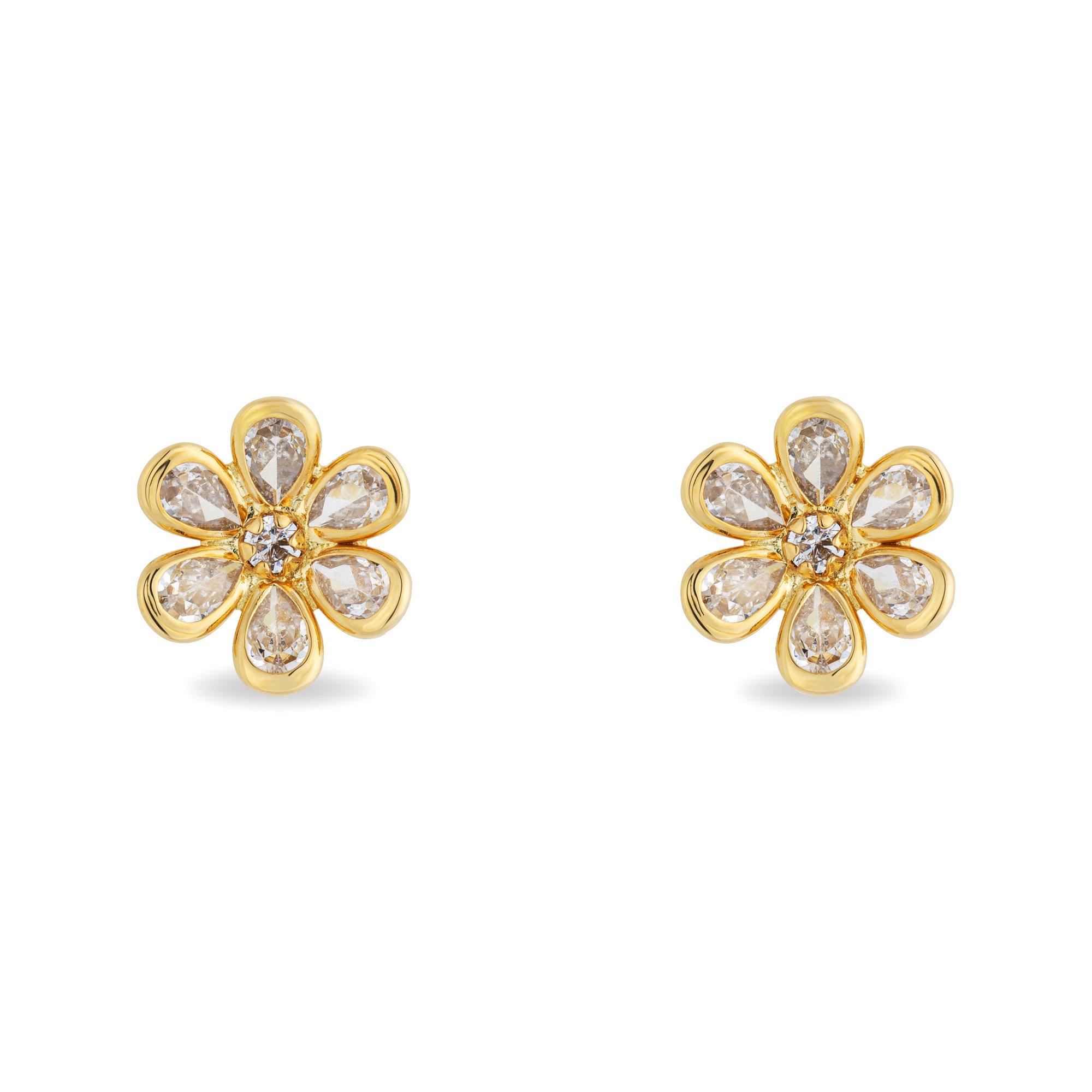 Diese Ohrstecker von L'Atelier Gold 18 Karat by Manor sind aus Gelbgold hergestellt. Das kunstvolle florale Design mit Zirkonia wirkt zart und feminin.