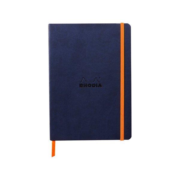 Das Rhodiarama Notizbuch Softcover hat einen flexiblen Einband aus italienischem Kunstleder und einen geleimten, eckigen Rücken. Ein Lesezeichenband und eine dehnbare Innentasche sind auch dabei.