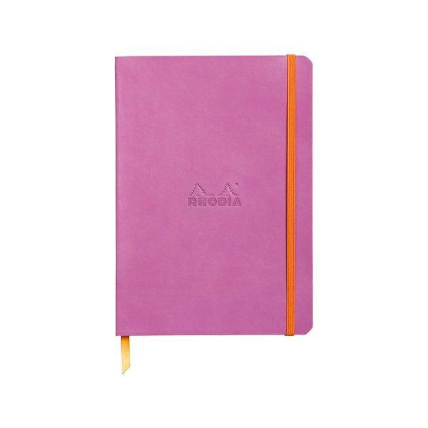Das flexible Rhodiarama Notizbuch hat einen flexiblen Einband aus italienischem Kunstleder und einen geleimten, eckigen Rücken. Ein Lesezeichenband und eine dehnbare Innentasche sind auch dabei.