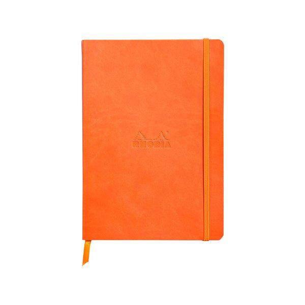 Das flexible Rhodiarama Notizbuch hat einen flexiblen Einband aus italienischem Kunstleder und einen geleimten, eckigen Rücken. Ein Lesezeichenband und eine dehnbare Innentasche sind auch dabei.