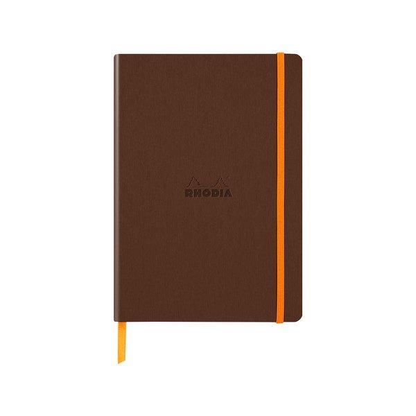 Das flexible Rhodiarama Notizbuch hat einen flexiblen Einband aus italienischem Kunstleder und einen geleimten, eckigen Rücken. Ein Lesezeichenband und eine dehnbare Innentasche sind auch dabei.