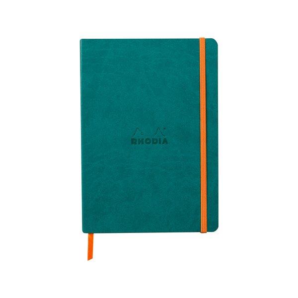 Das flexible Rhodiarama Notizbuch hat einen flexiblen Einband aus italienischem Kunstleder und einen geleimten, eckigen Rücken. Ein Lesezeichenband und eine dehnbare Innentasche sind auch dabei.