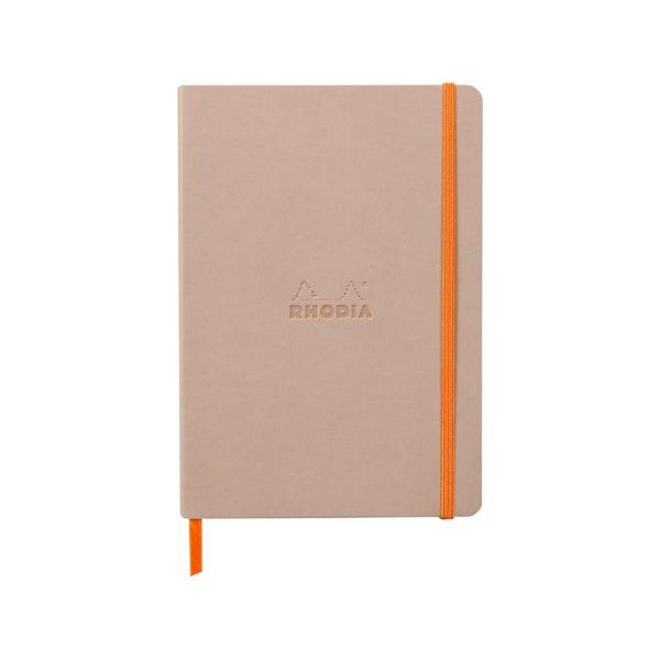 Das flexible Rhodiarama Notizbuch hat einen flexiblen Einband aus italienischem Kunstleder und einen geleimten, eckigen Rücken. Ein Lesezeichenband und eine dehnbare Innentasche sind auch dabei.
