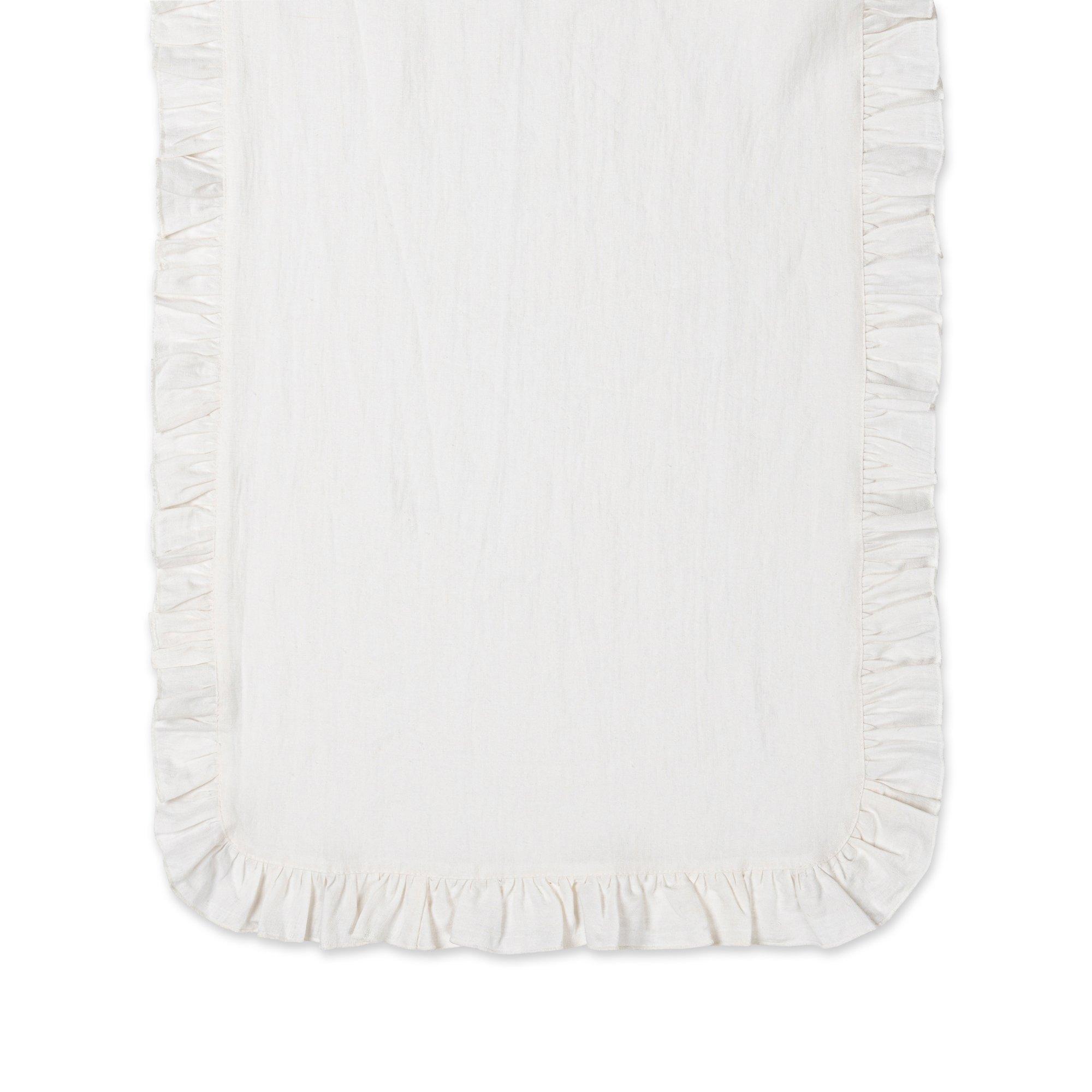 Hochwertiger, dezenter Tischläufer von Manor mit einem erfrischenden Rüschensaum.