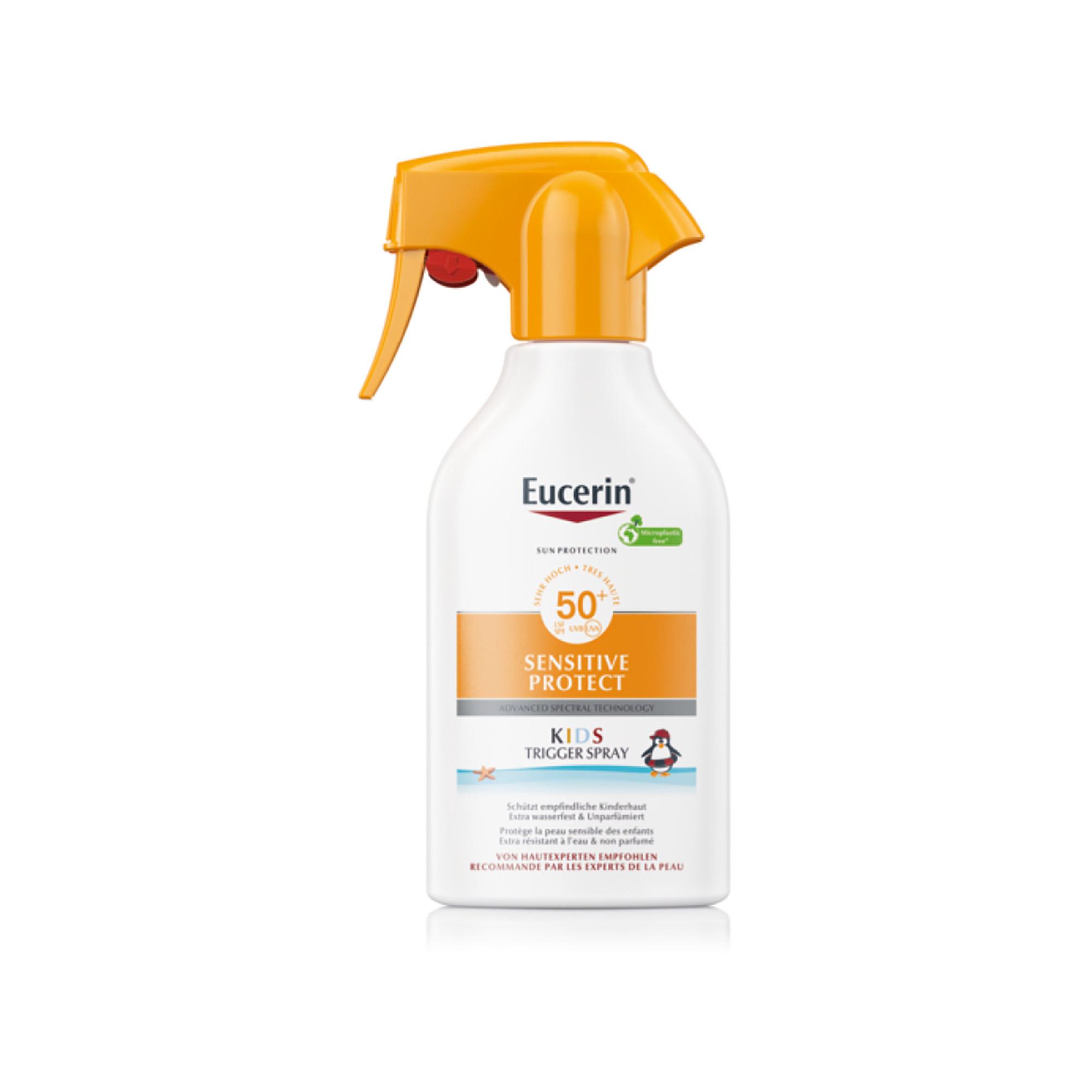 Eucerin SUN Kids Trigger Spray SPF 50+ wurde speziell entwickelt, um die empfindliche Kinderhaut vor Sonnenbrand zu schützen und das Risiko von dauerhaften UV-bedingten Hautschäden zu verringern. Extra wasserfest und ohne Duftstoffe.