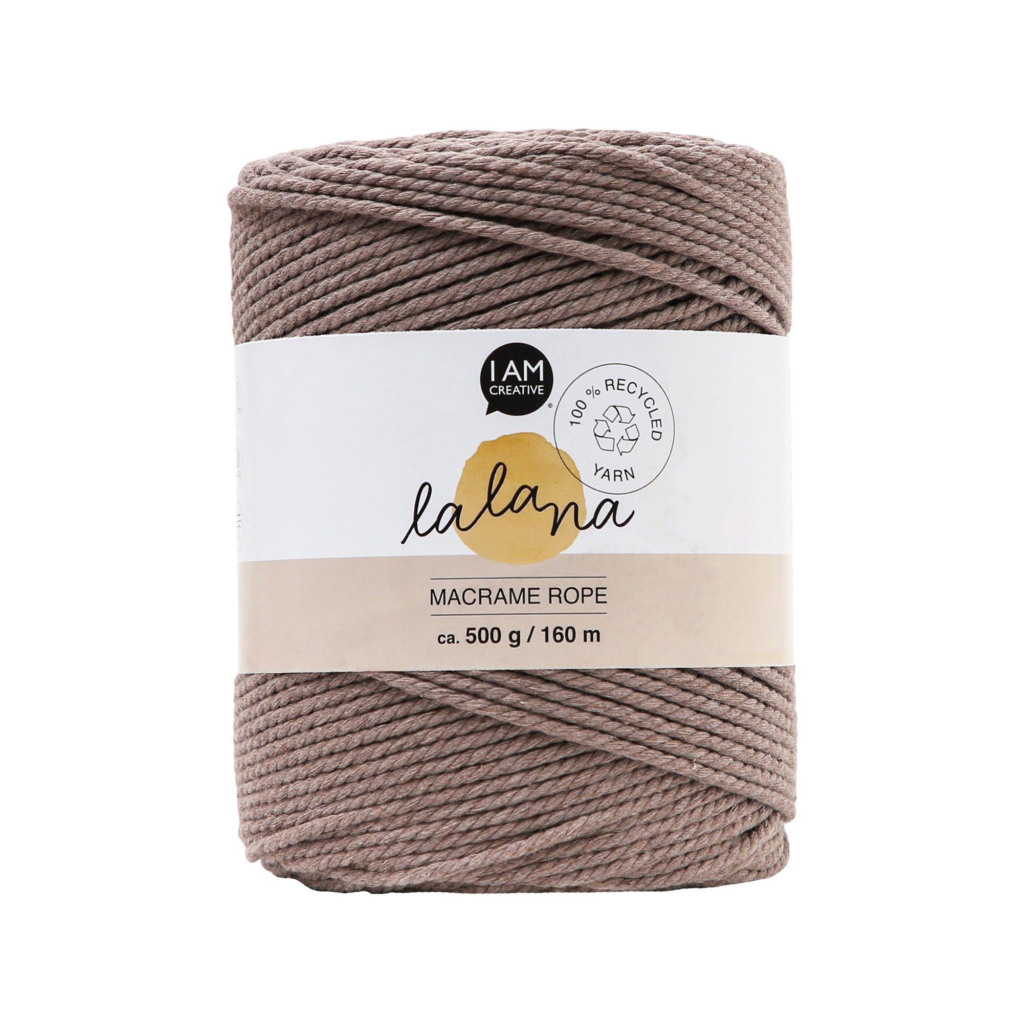 Lalana Macrame Rope ist die typische 3-strängig gedrehte Makramee Kordel. Damit gelingen Makramee Arbeiten wie Wanddekorationen, Blumenampeln, Schlüsselanhänger usw. ganz bestimmt. Auch Armbänder und Halsketten können damit hergestellt werden.