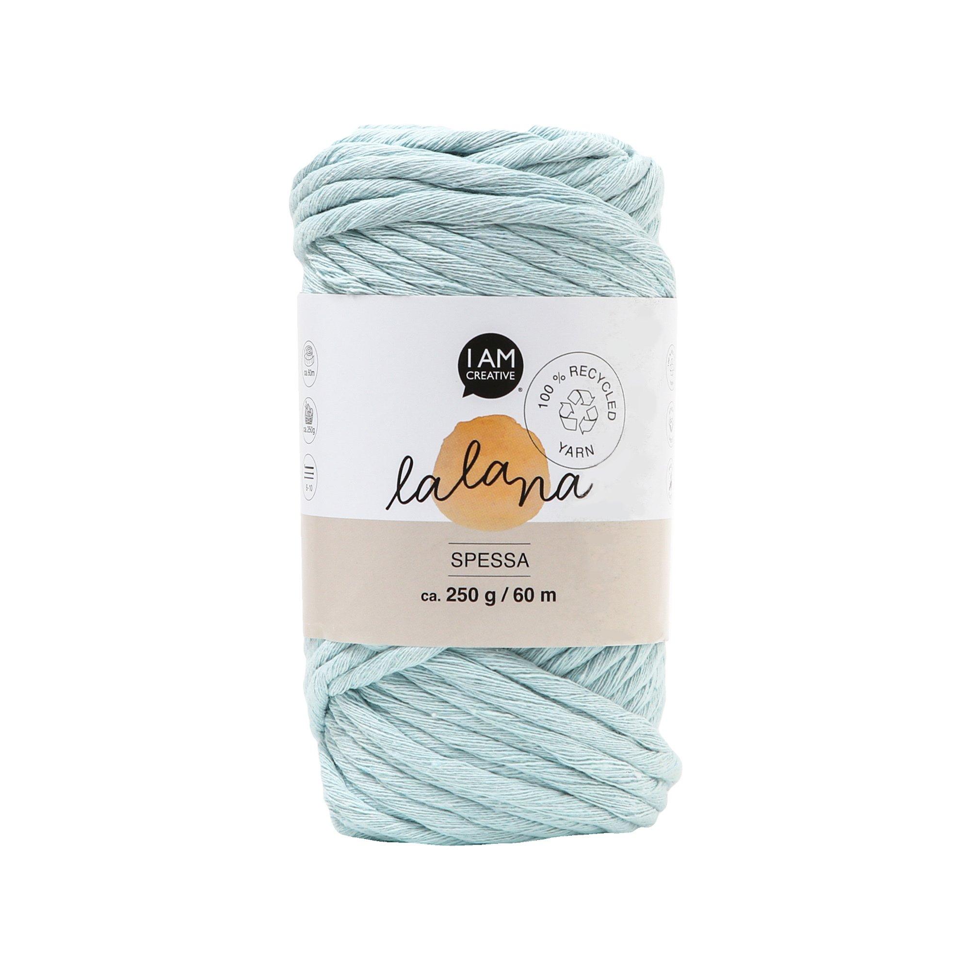 Lalana Spessa ist ein dickes Makramee-Baumwollgarn aus 80 % Baumwolle, 20 % Mischfasern. Mit dem Garn kannst du schönste DIY Makramee und XL Häkel- Strick- und Webkreationen anfertigen. Mit diesem weichen Baumwollgarn fertigst du grossartige Projekte mit den glattesten Makramee Knoten, flauschige Federn und den weichsten Fransen an. Ein super dickes Garn mit 60 Fäden.