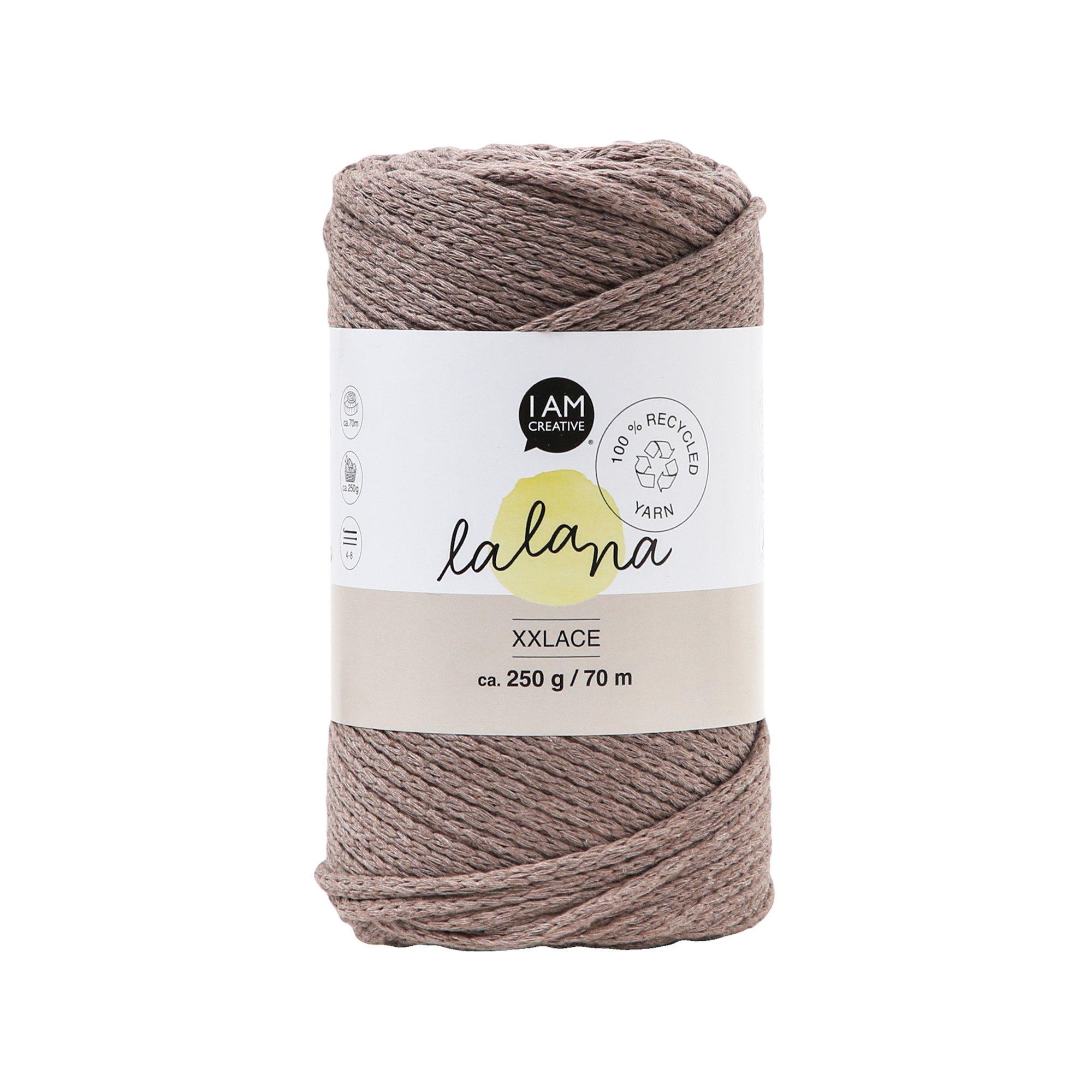 Lalana XXlace ist, wie der Name schon sagt, ein dickeres Kettengarn, mit welchem alles gemacht werden kann. Häkeln, stricken, knüpfen in schönster Farbenpracht. Es ist ein weiches receycletes Garn und ergibt modische Taschen, Necessaires, Körbchen, Kissen usw., zum Häkeln, Stricken, Knüpfen (ohne auskämmen). Netz-, Mode- oder Badetaschen oder Necessaires, aber auch luftige Pullover und dünne Makrameedekorationen ohne Fransen.