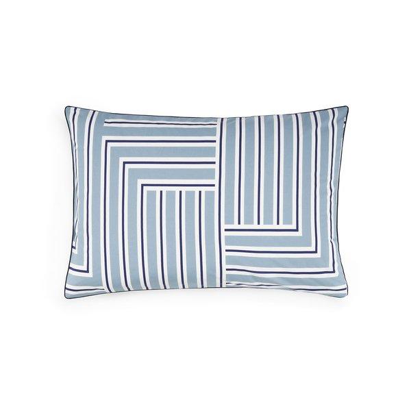 Dieser Kissenbezug ist aus Perkal aus gekämmter, langstapeliger Baumwolle, 80 Fäden/cm², gefertigt. Er weist strukturierte Grafiken und einen raffinierten geometrischen Geist in zeitlosen Blau- und Grautönen auf. Das Muster ist beidseitig verwendbar und bietet Vielseitigkeit im Styling.