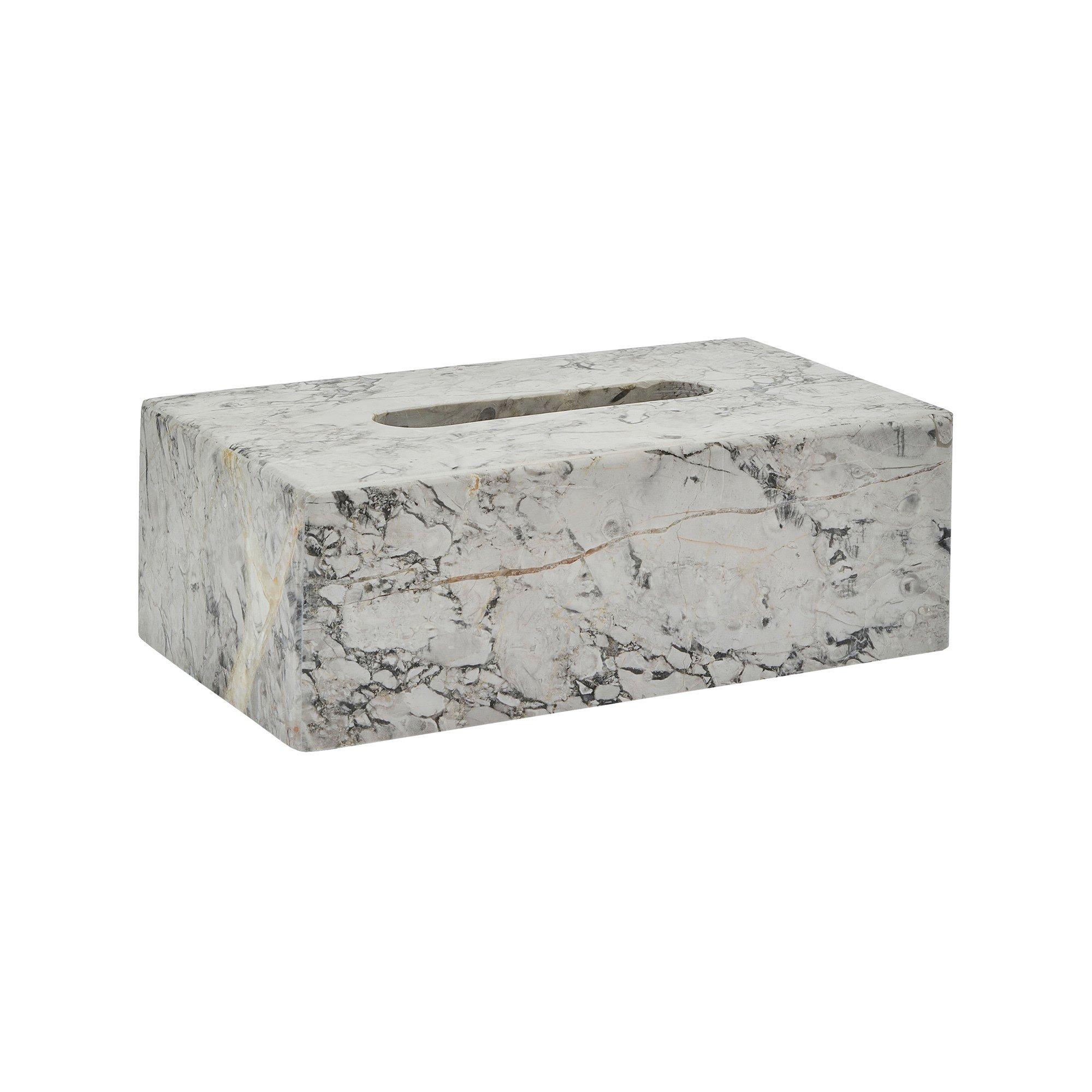 Ein Marmordesign mit schwarzen Details für eine edle Optik. Diese Kleenex-Box macht Ihr Badezimmer unverwechselbar. Hergestellt aus Naturstein für ein qualitativ hochwertiges Endergebnis, an dem Sie jahrelang Freude haben werden. Zeitlos und elegant, eine Serie, die leicht zu kombinieren ist!