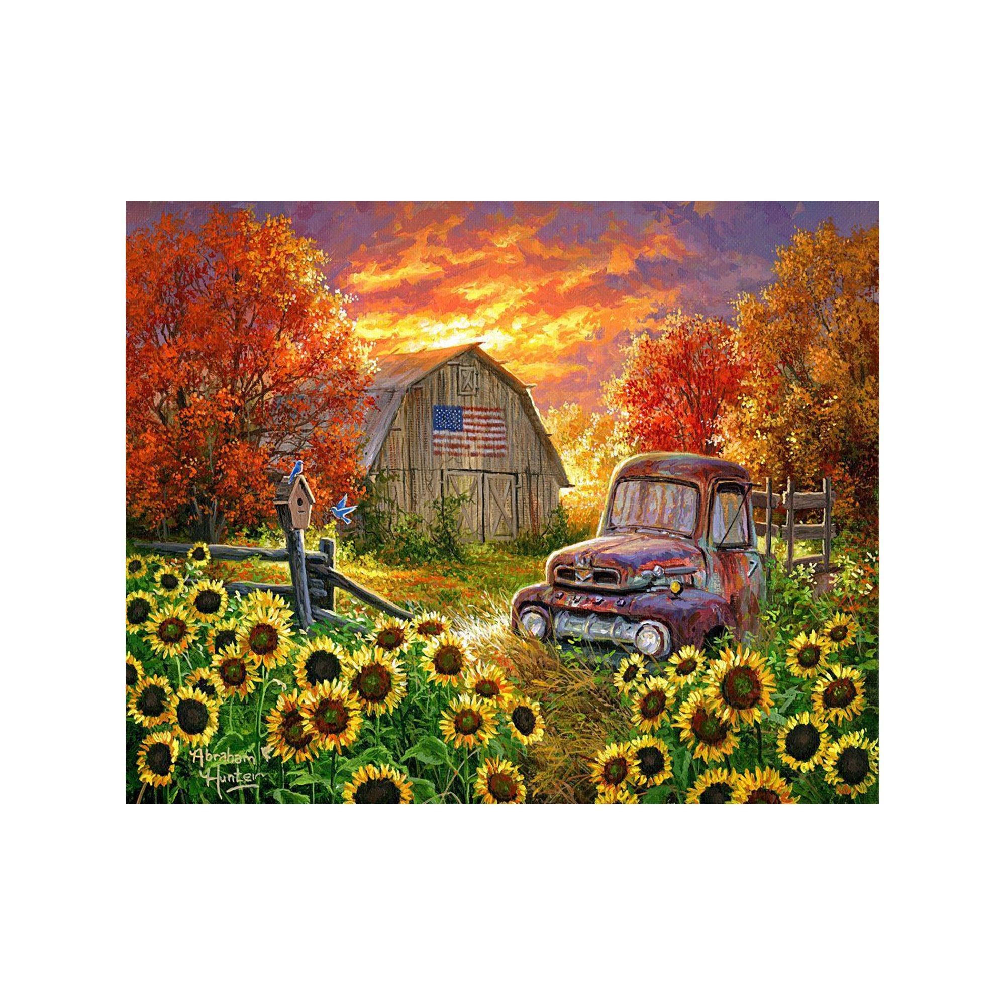 Figured'Art, Malen nach Zahlen, Sonnenblumenfeld mit Oldtimer