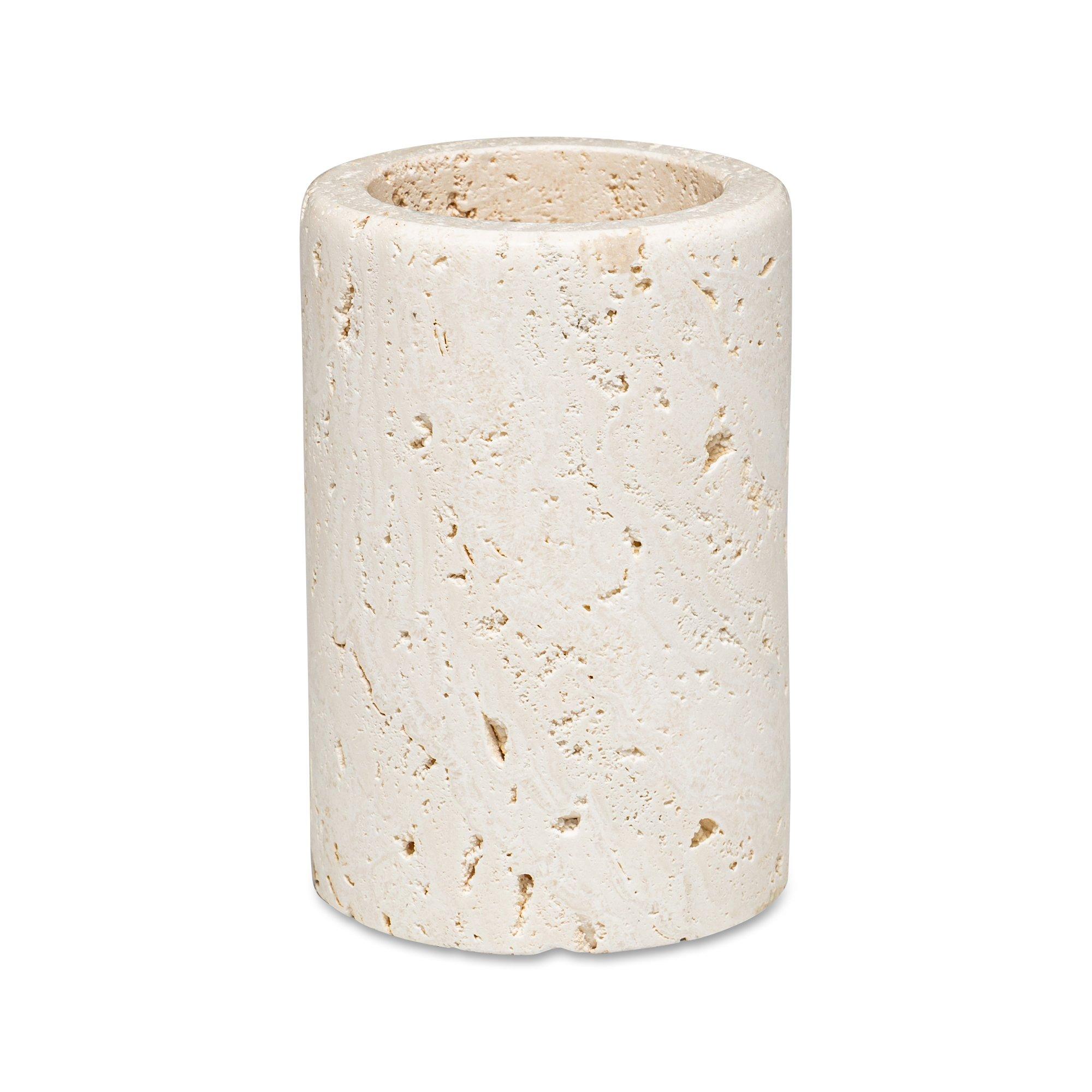 Dieser stilvolle Becher von Manor, aus weissem Travertin hergestellt, lässt sich nicht nur mit Zahnbürste und -pasta befüllen. Das edle Zahnglas strahlt mit klassischer Ästhetik zurückhaltenden Purismus aus.