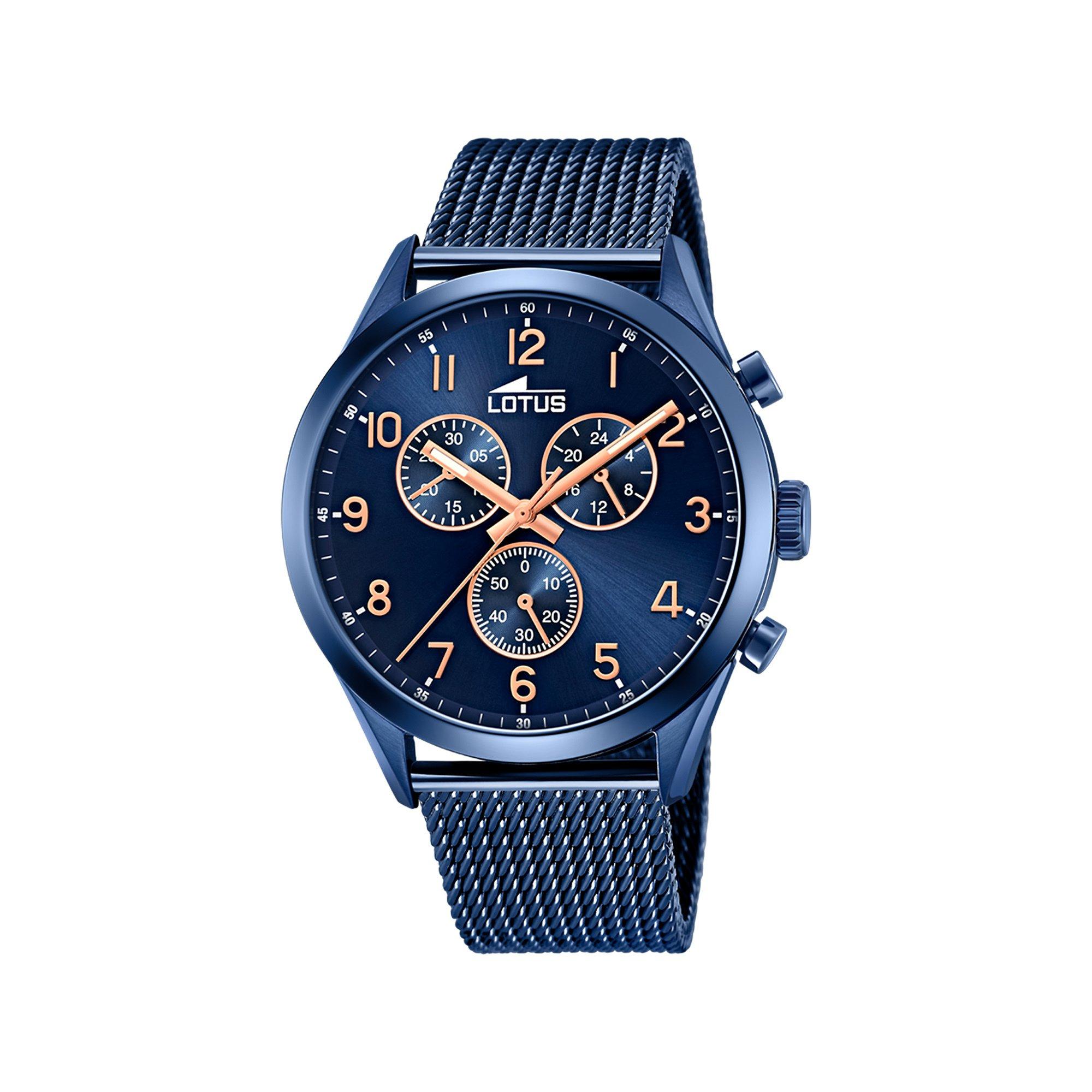 Lotus Herrenuhr mit einem Edelstahlgehäuse, einem Mineralglas und einem Edelstahlband.