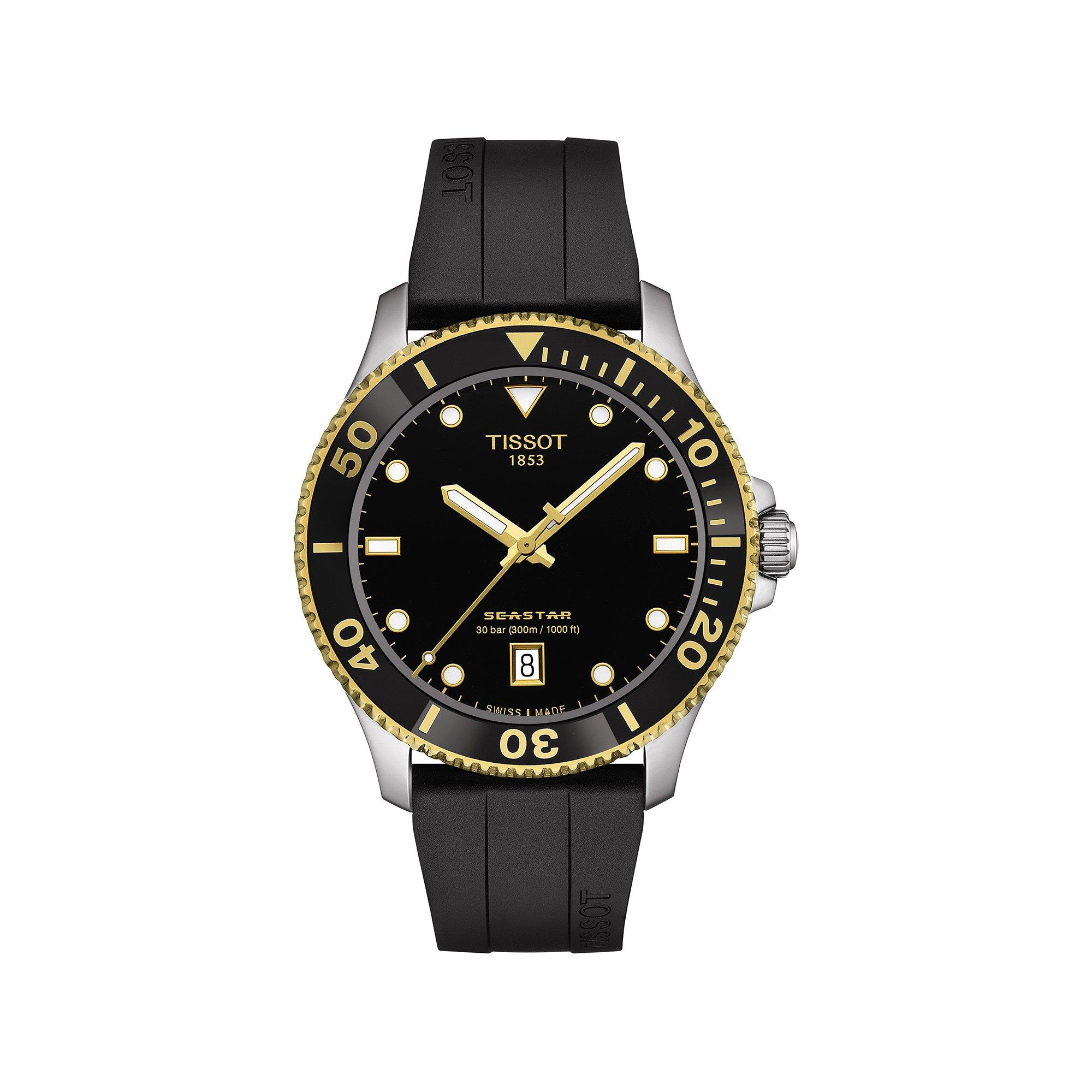Vom ersten Blick bis zum täglichen Gebrauch – die Seastar 1000 Quartz 40mm steht für Stil, Leistung und Vielseitigkeit. Jedes Modell ist eine harmonische Verbindung von Eleganz und Technologie, die das Know-how der Schweizer Uhrmacherkunst mit immerwährendem Design vereint. Die vielseitige Gehäusegrösse wurde für all jene entwickelt, die nach einer modernen, geschmackvollen Uhr suchen, die sich den ganzen Tag lang tragen lässt und aussergewöhnliche technische Leistungsfähigkeit verspricht. Wie auch die 36 und 45,5 mm messenden Seastar Modelle verdankt diese Uhr ihren Namen der Wasserdichtigkeit bis zu einem Druck von 30 bar (300 m), was 1.000 Fuss entspricht. Die Seastar bietet eine einseitig drehbare Lünette für zuverlässige Zeitmessung unter Wasser, und dank der Verwendung von Super-LumiNova® Leuchtbeschichtung auf den Zeigern und Stundenmarkierungen ist die Ablesbarkeit auch bei schlechten Lichtverhältnissen gegeben. Tissots benutzerfreundliches Schnellwechselsystem erlaubt den einfachen Austausch von Armbändern, die der Besitzer aus einer breiten Palette kompatibler Tissot Armbänder auswählen kann. Damit lässt sich die Seastar je nach Stimmung oder Anlass personalisieren.