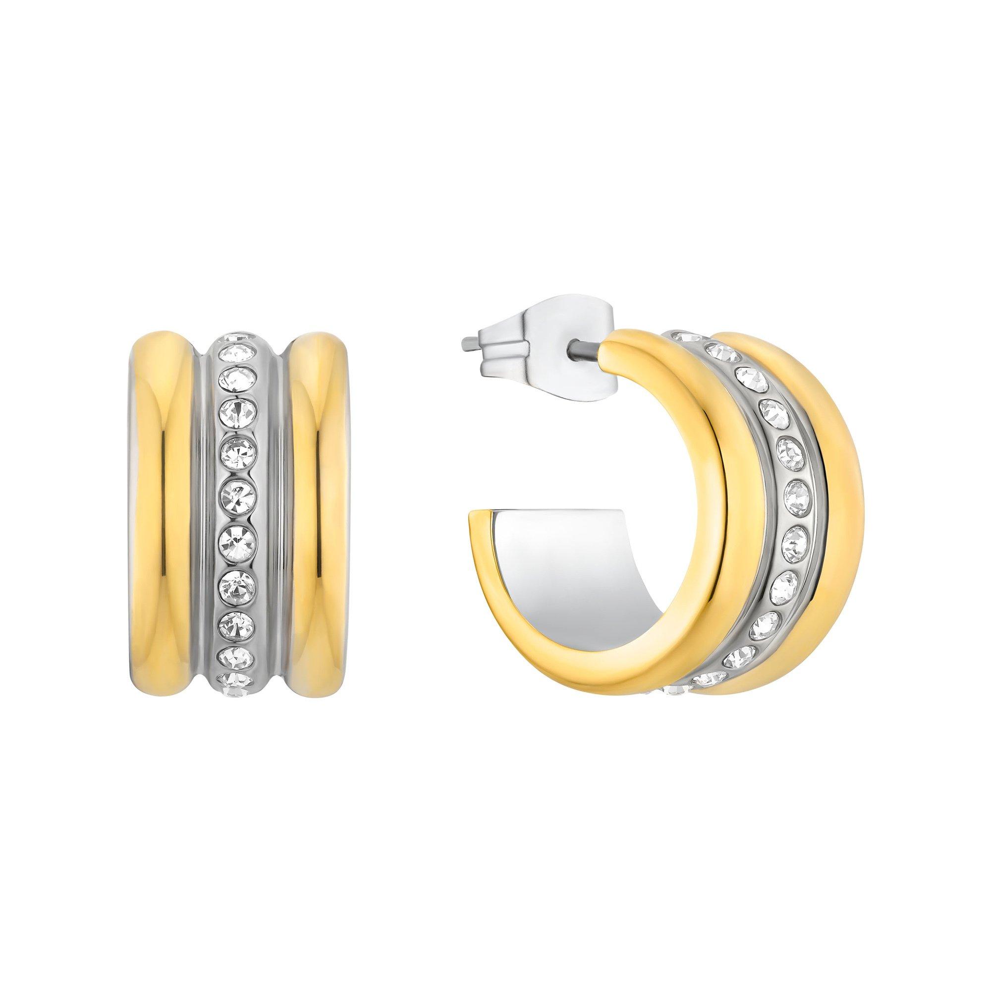 Diese Creolen von s.Oliver sind aus Bicolor-Edelstahl mit einer Zirkonia-Einlage in der Mitte gefertigt. Das elegante Design lässt sich leicht kombinieren. Der Ohrschmuck schliesst unkompliziert per Steckverschluss.