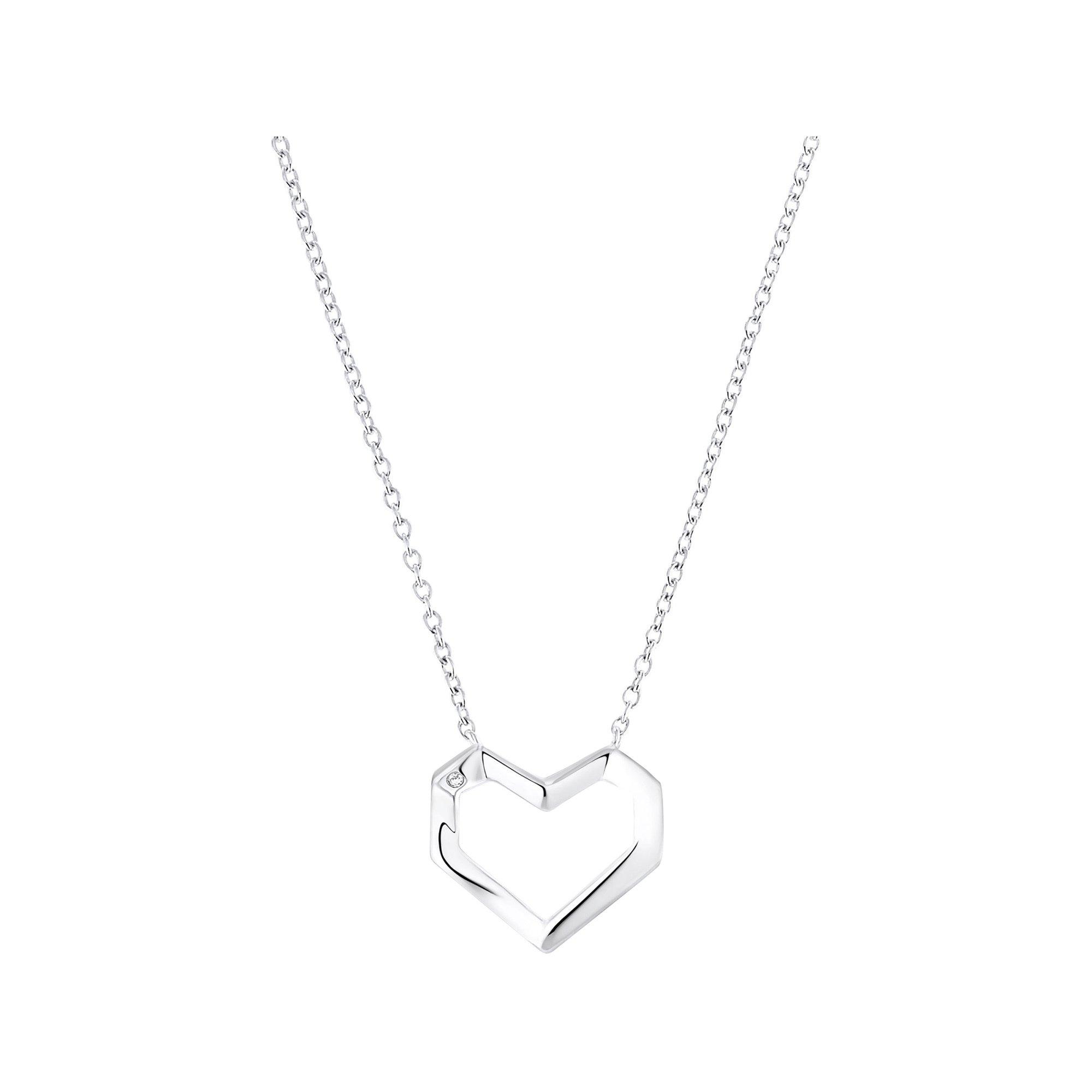 Diese Halskette von s.Oliver aus rhodiniertem Silber mit Herz-Anhänger und Karabinerverschluss ist ein modernes Schmuckstück mit urbanem Touch.