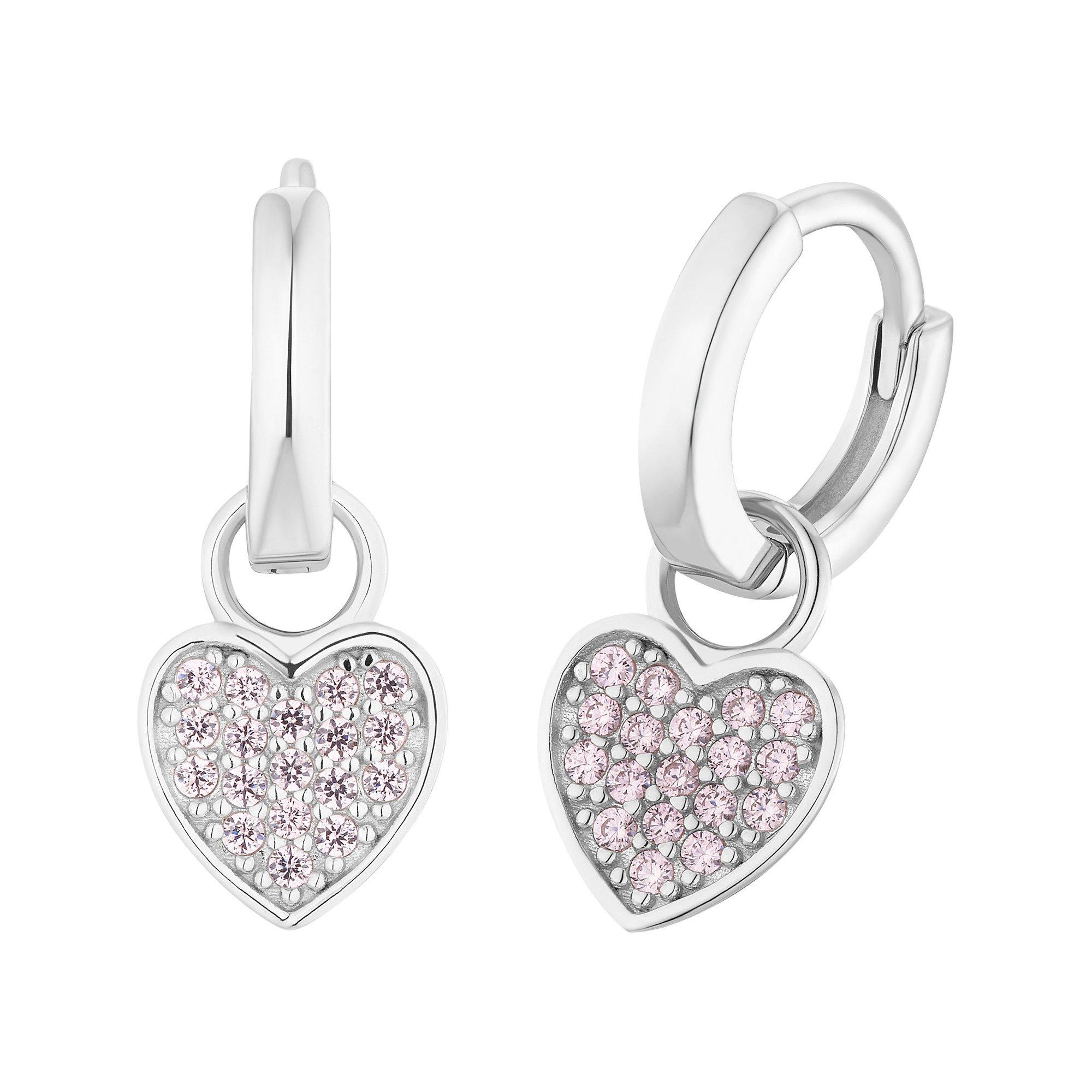 Süsse Mädchen Ohrhänger "Herz" aus hochwertigem 925 Sterlingsilber, verziert mit funkelnden Zirkonia (synth.) Steinen in einer natürlich schönen Zargenfassung. Die ca. 18 mm grossen Kinder Ohrringe bestehen aus Basic Creolen mit Herz-Einhängern, die jederzeit für einen Look Wechsel ausgetauscht werden können. Die Mädchen Ohrringe schliessen mit einem einfachen Scharnierverschluss. Die Ohrringe für Mädchen kommen in passender Schmuckbox, die sich ideal zum Verschenken eignet.