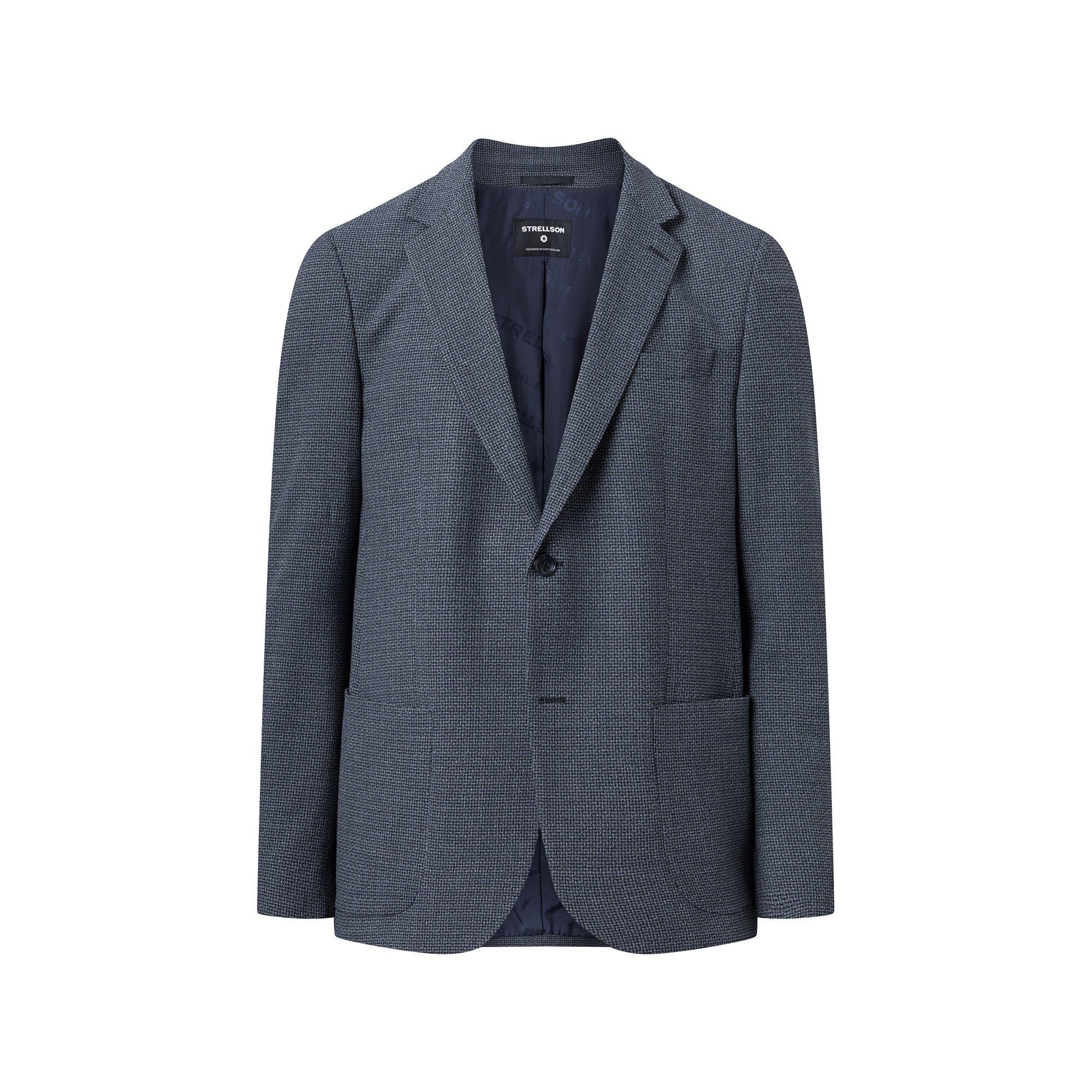 Diese Anzug-Jacke von Strellson ist Teil des einzigartigen Baukasten-Systems des Schweizer Labels. Das Sakko ist aus einem bequemen, leichten Viskose-Mix mit feinem Hahnentritt-Muster hergestellt und gehört zur Flex Cross Kollektion, die mit zeitgemässen, kompatiblen Schnitten und Materialien vielseitig kombinierbare Herrenmode anbietet.