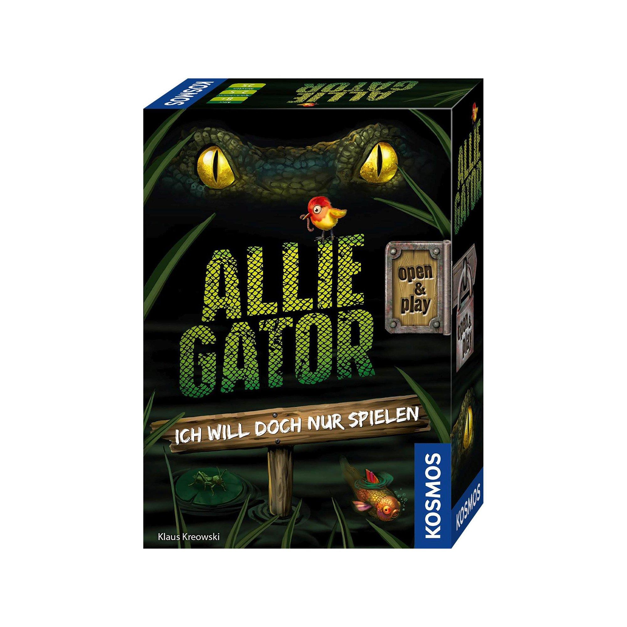 Vorsicht, Allie Gator liegt auf der Lauer! In diesem Kartenspiel haben die Spielerinnen und Spieler je fünf Handkarten. Reihum spielt jeder oder jede eine davon aus und zieht eine neue Karte nach. Ganz einfach, aber wer keine Karte spielen kann, kassiert Minuspunkte. Die lustigen Sonderkarten bringen den Extra-Kick ins Spiel. Ein temporeiches Kartenspiel für alle ab 8 Jahren. In der coolen Open & Play Magnetbox ist das Spiel perfekt für \r\nunterwegs. Schnell, lustig und mit einfachen Regeln: Ein bissiges und turbulentes Kartenspiel für die ganze Familie.\r\n\r\nInhalt: 88 Karten, 5 Punktezähler, 1 Allie-Gator-Holzchip, 1 Pfeil-Tableau, 1 Spielanleitung