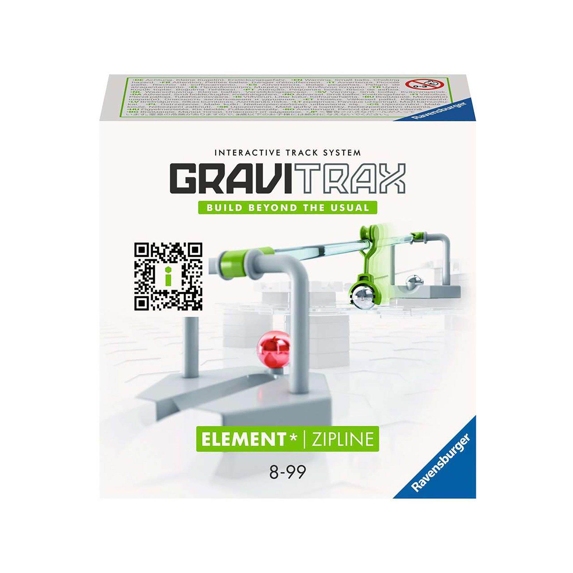 Mit dem GraviTrax Element Zipline können weite Distanzen und grosse Höhenunterschiede spektakulär überwunden werden. Mit dem GraviTrax Element Zipline für das Ravensburger Kugelbahnsystem können weite Distanzen bewältigt und verschiedene Teile der Bahn spektakulär verknüpft werden. Eine anrollende Kugel löst den Schlitten aus. Spielerisch gleitet der Schlitten an das Ziel der Zipline und startet dort eine neue Kugel. Grosse Höhenunterschiede sind dabei für die Zipline keine Hürde! Das neue Bügelsystem ermöglicht einen noch stabileren Transport des Schlittens - für noch mehr GraviTrax-Action. GraviTrax ist ein flexibel erweiterbares, interaktives Kugelbahnsystem für Kinder ab 8 Jahren: Mit GraviTrax bauen Kinder, Jugendliche und Erwachsene nicht nur einfache Kugelbahnen. Sie erschaffen einzigartige Kugelbahnwelten. Durch das freie Konzipieren der Kugelbahnen und das Erforschen des Rollverhaltens der Kugeln wird das Verständnis für Wissenschaft geschärft und Schwerkraft hautnah erlebbar. Das GraviTrax Universum beinhaltet drei spannende Linien – CORE, PRO und POWER. Alle GraviTrax Linien und Produkte können frei miteinander kombiniert werden. Durch unzählige Erweiterungen mit klassischen Bauelementen oder Steine, die besondere Action und Tricks ermöglichen, lässt sich das GraviTrax-Universum unendlich vergrössern. So kann jeder individell tüfteln, ausprobieren und über sich hinausbauen.
