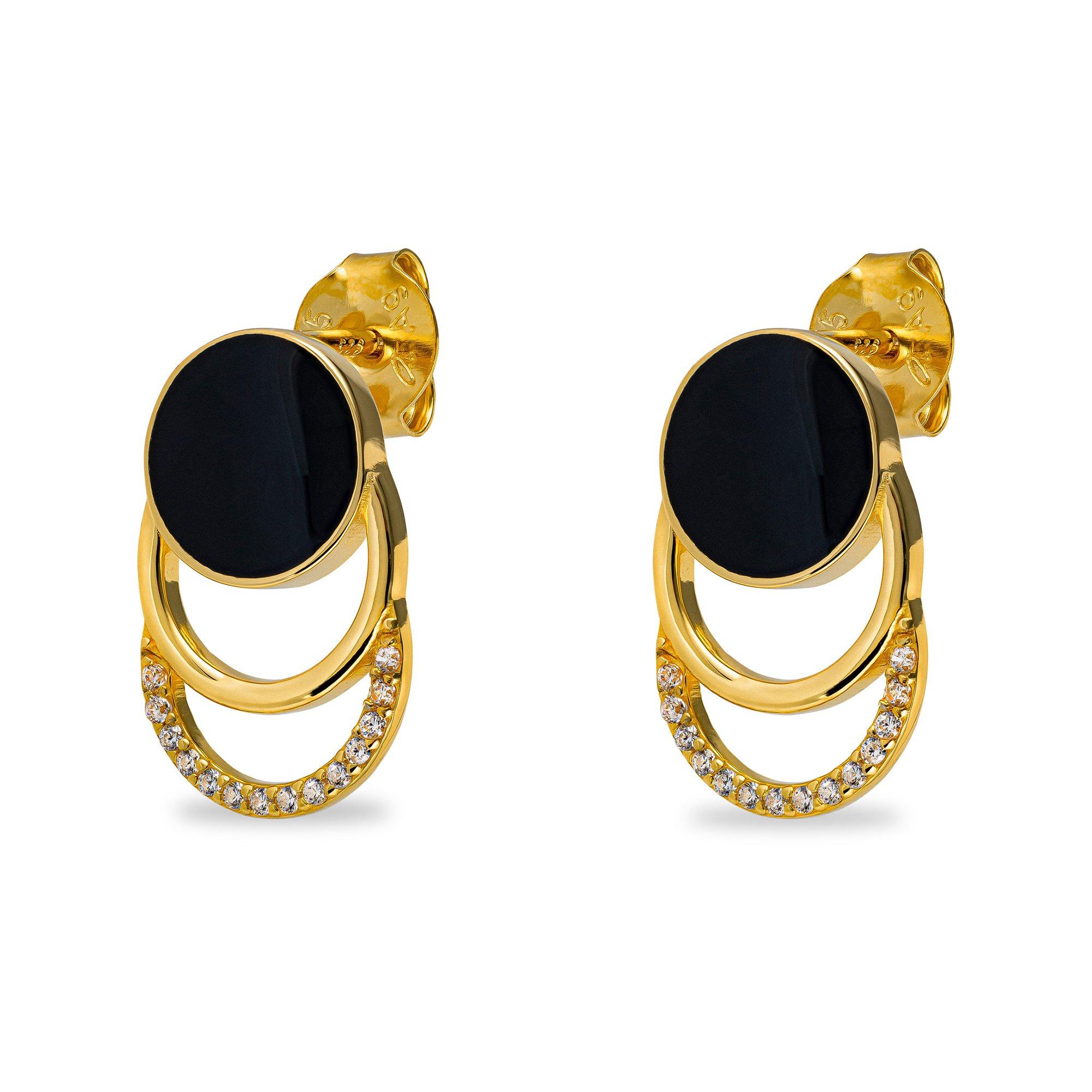 Diese Ohrstecker von L'Atelier Sterling Silver 925 sind vergoldet und in modernem, kreisförmigem Design mit Ziersteinen besetzt. Die rückseitigen Butterfly-Verschlüsse lassen sich leicht bedienen und sitzen angenehm und sicher am Ohr.