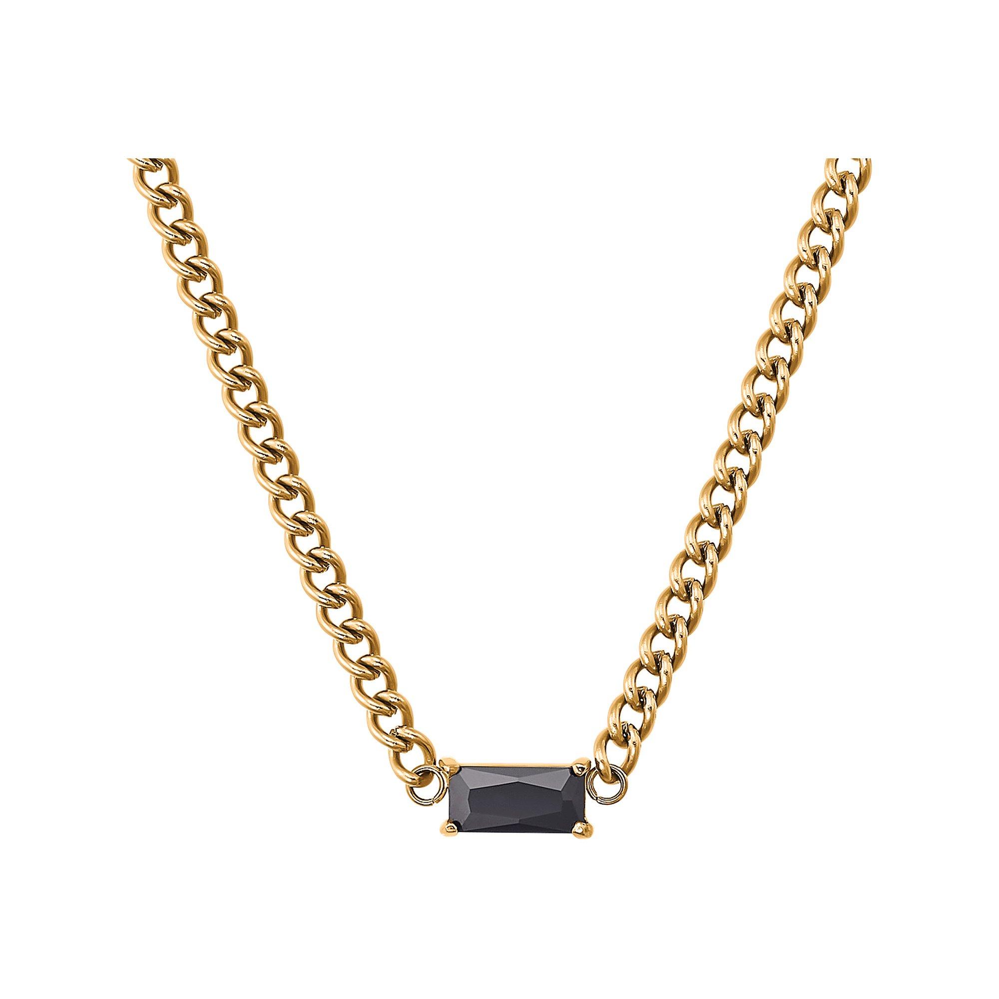Damen-Halskette von L' Atelier. Klassische Rundankerkette mit modernem Twist für Damen von der Echtschmuck-Marke L' Atelier. Das Necklace wurde aus robustem, hochwertigem Staineless Steel gefertigt. Die Chain hat eine Länge von 35 cm, kann jedoch nach Bedarf auf bis zu 40 cm verlängert werden. Hierfür sorgt ein praktisches Verlängerungselement. Somit passt sich der Halsschmuck Damen perfekt deinen Hals und Outfit an. Für einen sicheren Halt beim Tragen sowie eine einfache Handhabe sorgt ein praktischer Karabinerverschluss. Highlight und Mittelpunkt der Gliederkette ist der solitäre schwarze Zirkonia Stein, welcher in die Neck-Chain integriert ist. Ein sofortiger Eyecatcher. Das Necklace women lässt sich gerne mit weiteren Schmuckstücken kombinieren. So auch mit dem passenden Armband und Creolen. Die Damenhalskette kommt in einer geeigneten Schmuckbox.