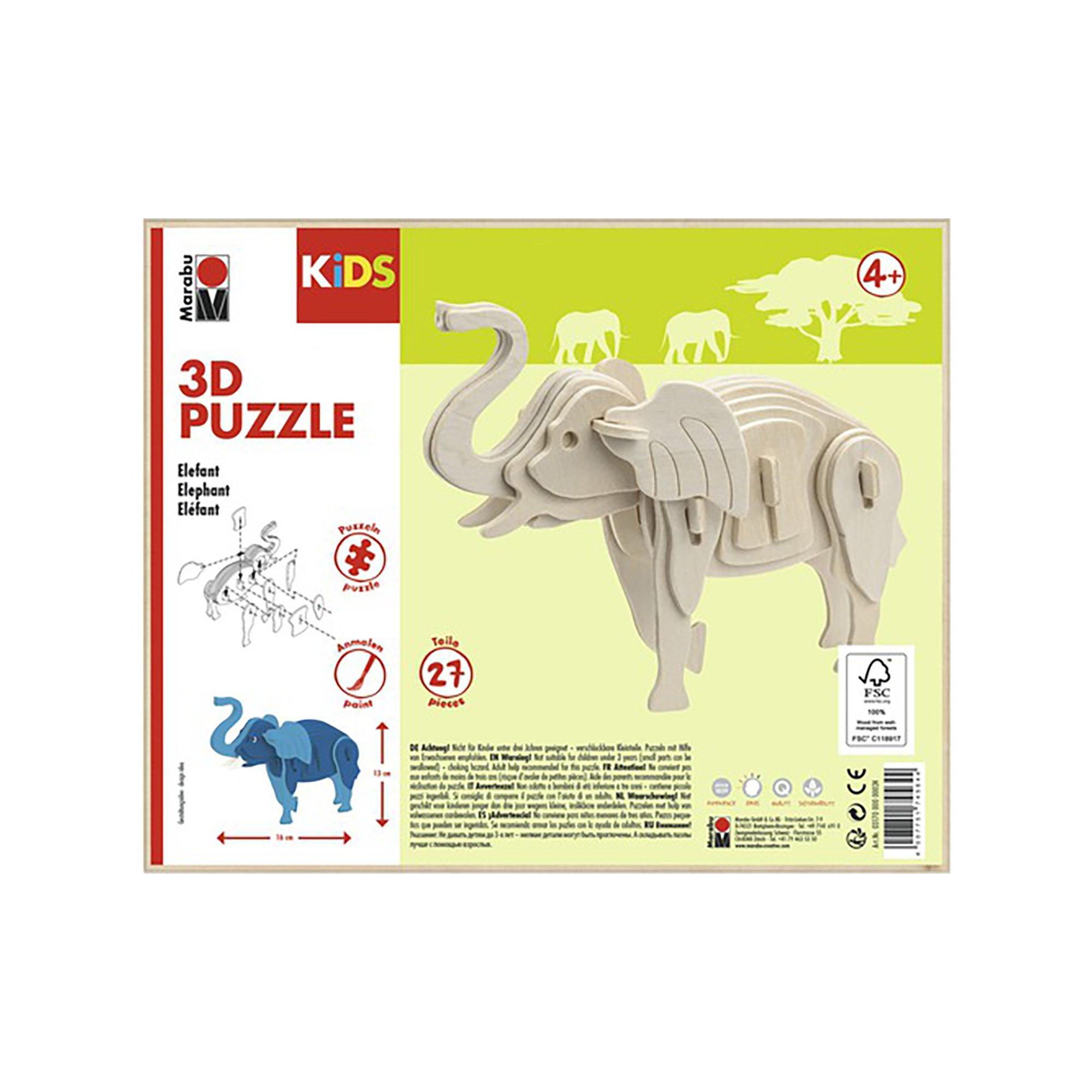 3D-Puzzle Elefant zum kreativen Gestalten und Sammeln. Einfacher Aufbau durch Stecktechniken. Ideal zu gestalten mit der Marabu KiDS Bastelfarbern. Puzzleteile aus FSC®-zertifiziertem Holz. 27 Puzzleteile, Tolle 3D-Puzzle zum kreativen Gestalten. Einfacher Aufbau durch Stecktechnik und daher ideal zum Basteln mit Kindern geeignet. Die tollen Motive lassen sich mit der Marabu KiDS Bastelfarbe bunt anmalen. Puzzeln – Anmalen - fertig!