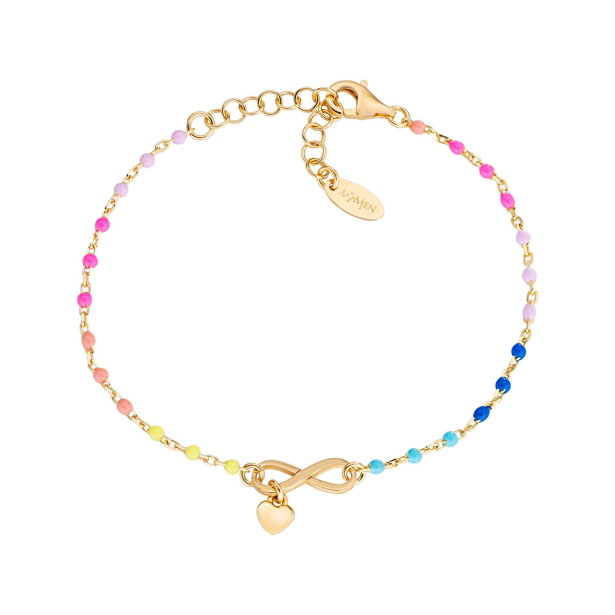 Dieses filigrane Armband von Amen besteht aus Sterlingsilber und bunter Emaille. Der Mittelpunkt bildet ein vergoldetes Unendlichkeits-Symbol und ein Herz-Anhänger Die Länge des Armbands kann individuell angepasst werden.