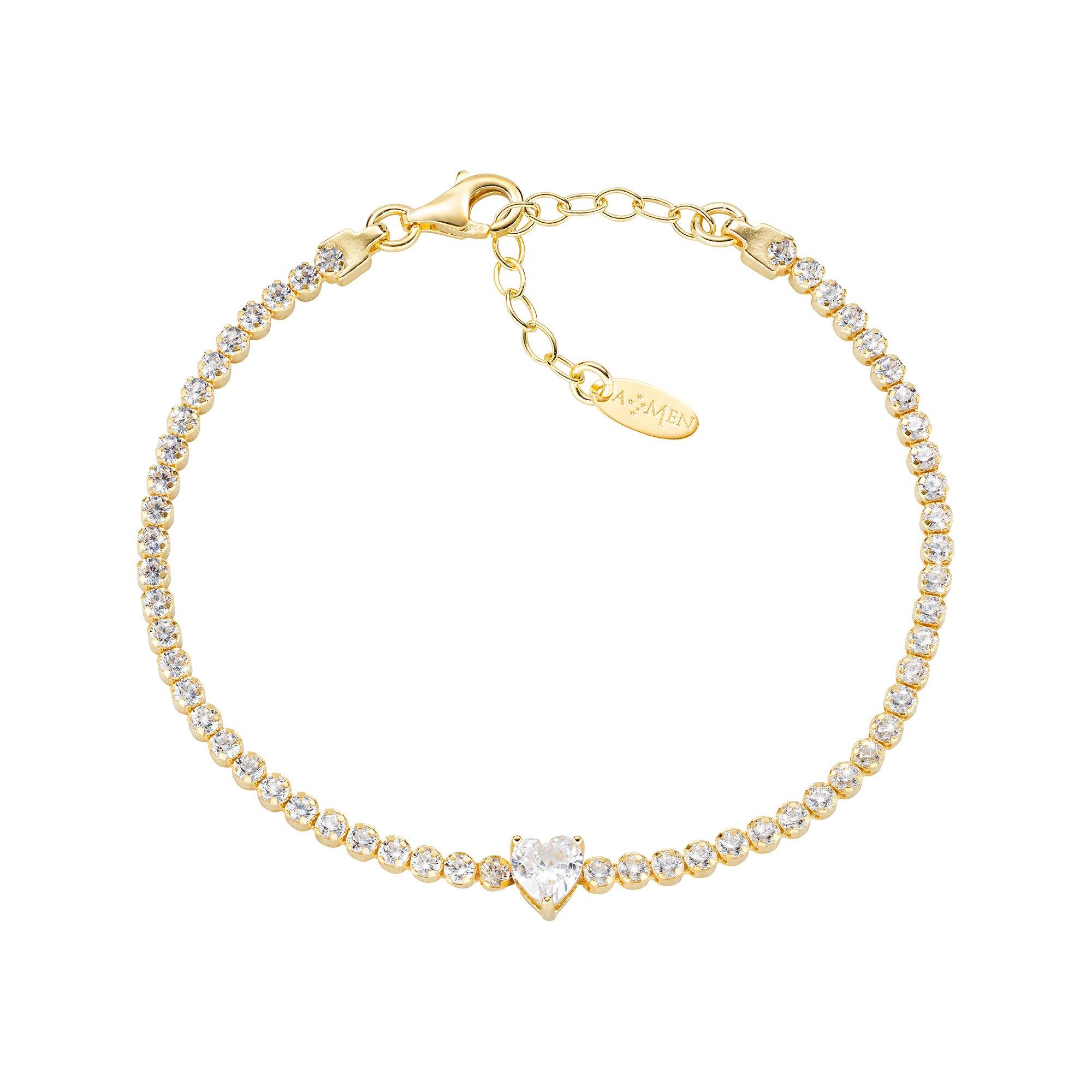 Dieses Armband von Amen aus vergoldetem Sterlingsilber präsentiert sich mit funkelnden Zirkonia-Steinen und einem weissen Zirkonia in Herzform. Die Länge des Armbands kann individuell angepasst werden.